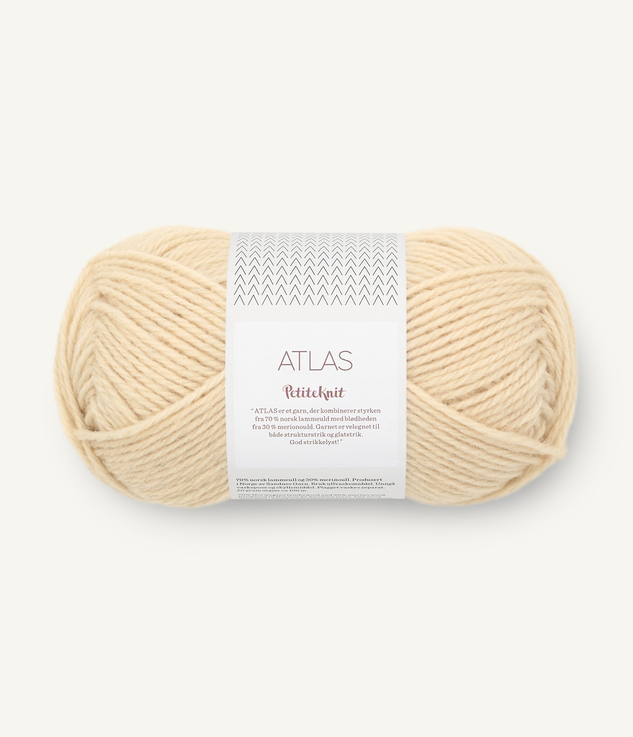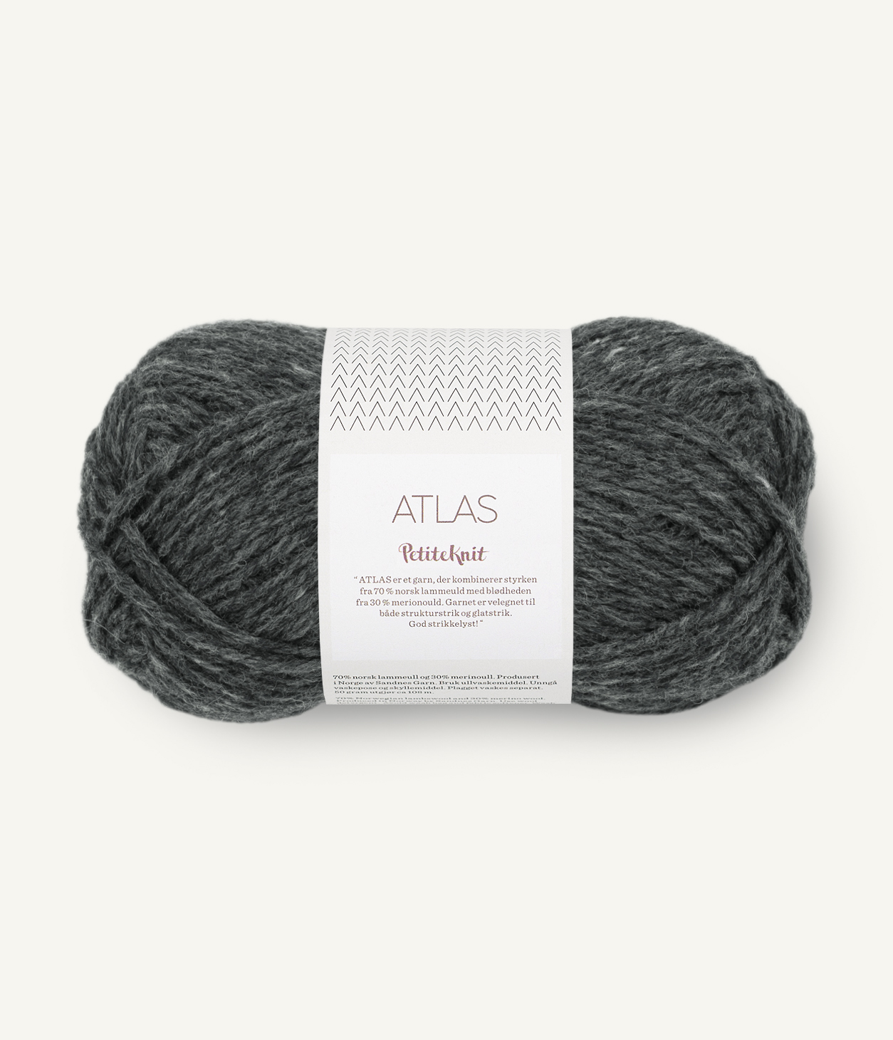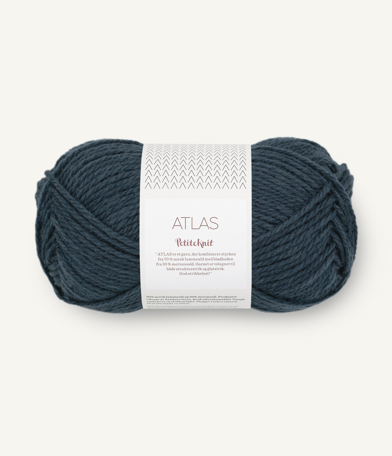 Atlas er et helt nyt garn, hvor PetiteKnit har skabt et smukt og alsidigt farvekort. Atlas er et kartet uldgarn spundet af 70% norsk lammeuld og 30% merinould, hvilket giver den perfekte balance mellem struktur, blødhed og holdbarhed. Det føles let og naturligt, og det færdige strik holder formen smukt – også efter mange års kærlighed og brug.