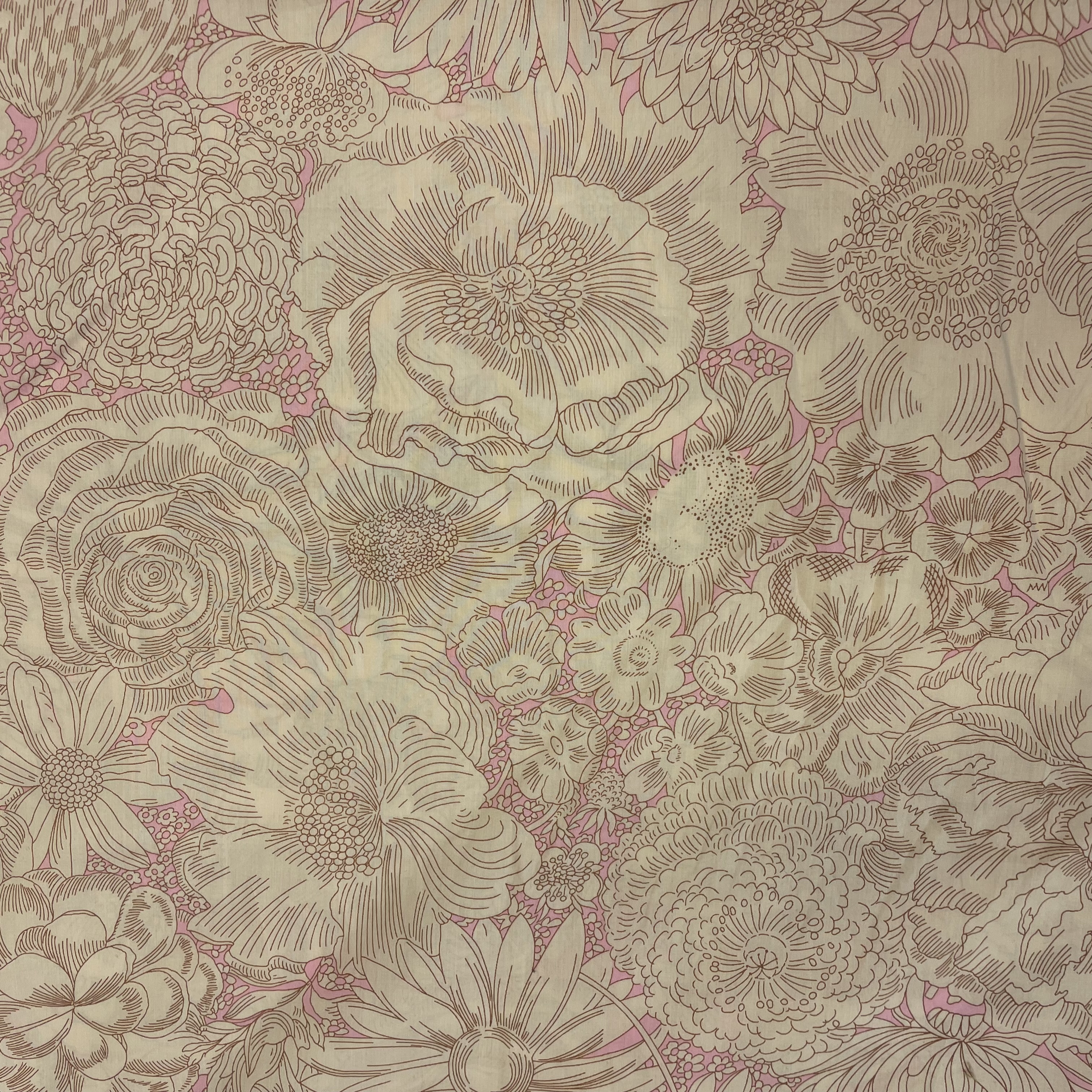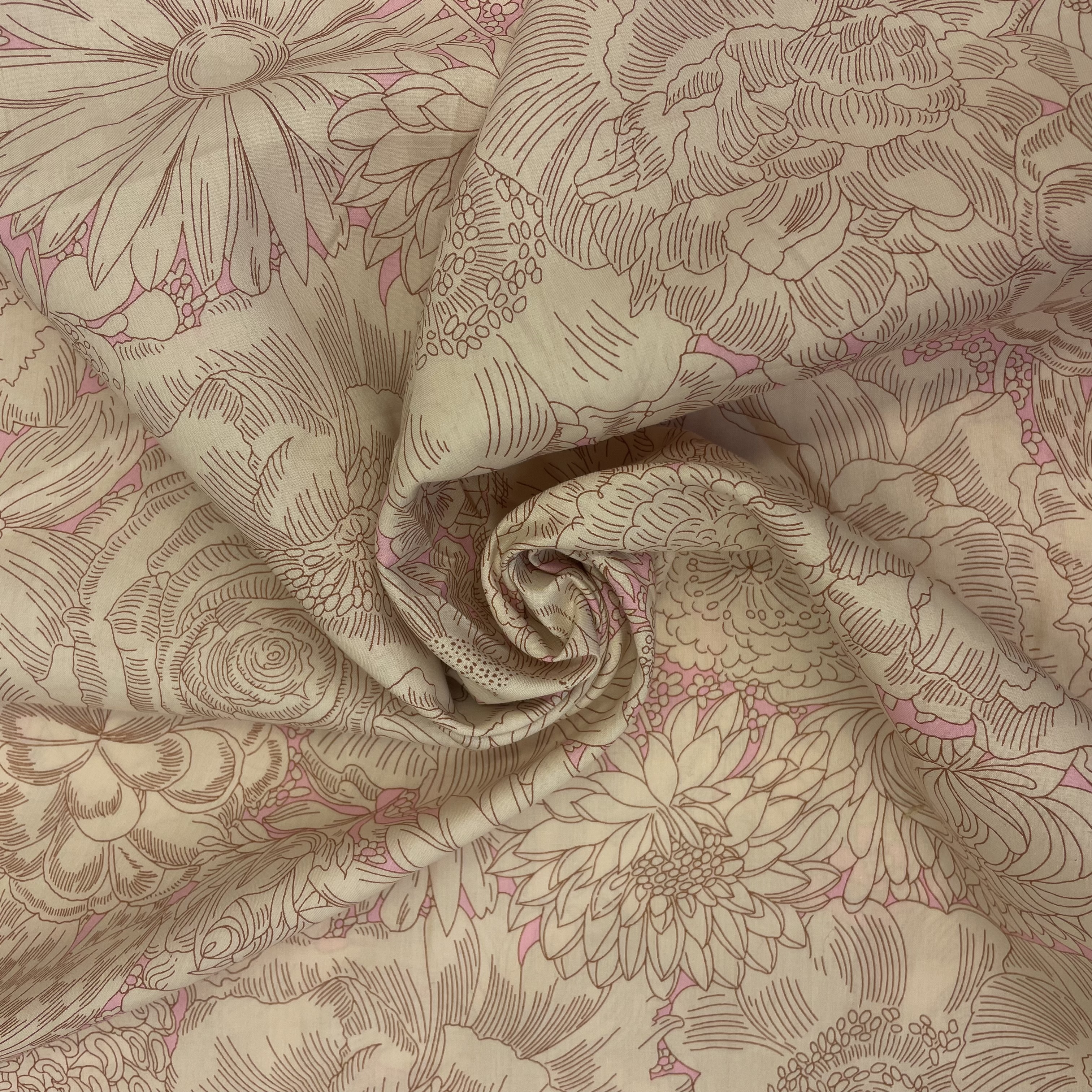 Smuk Liberty bomuld med store hvide blomster med lyserød baggrund.
