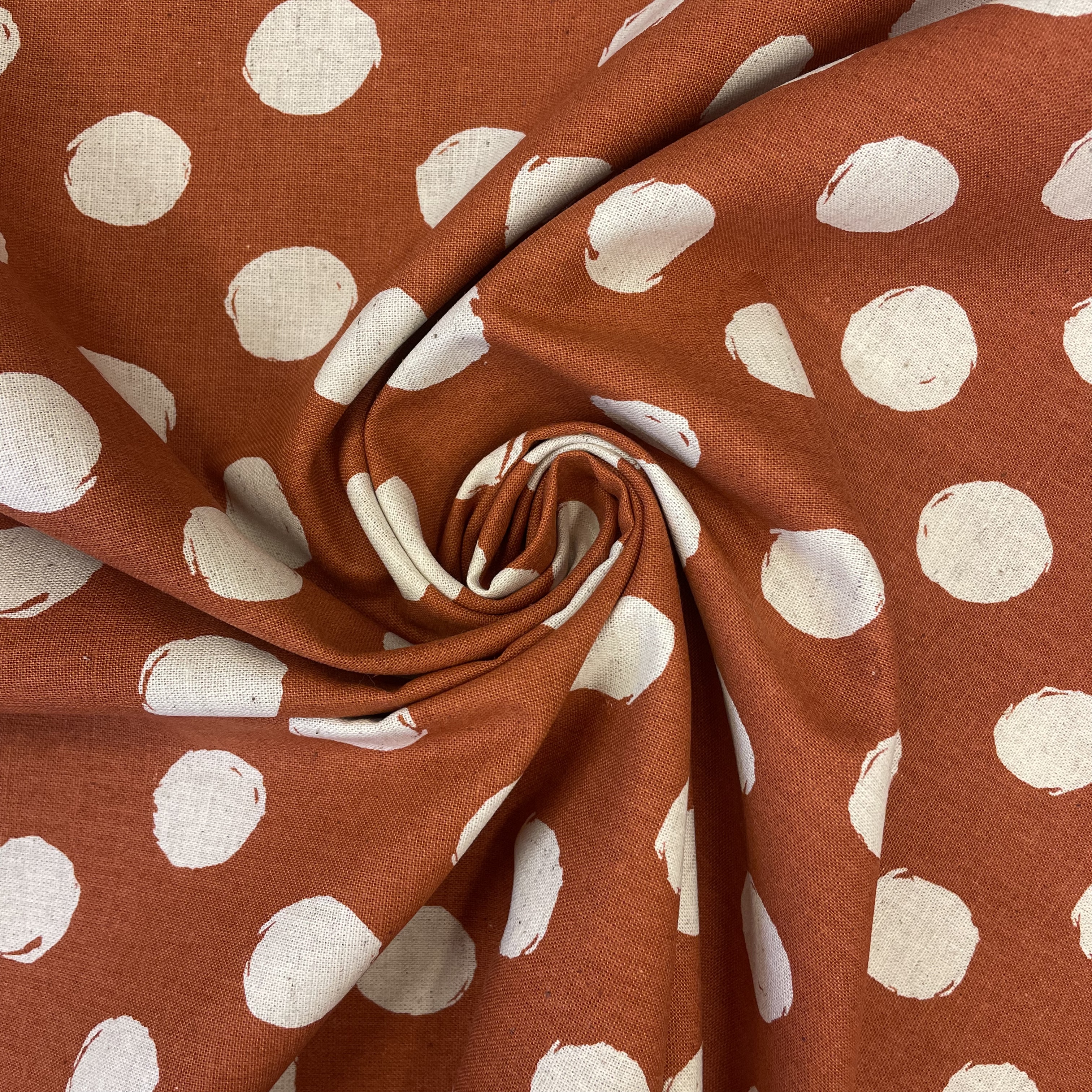 Kokka lærred i hør i Brændt orange med prikker - pr. 0,25m