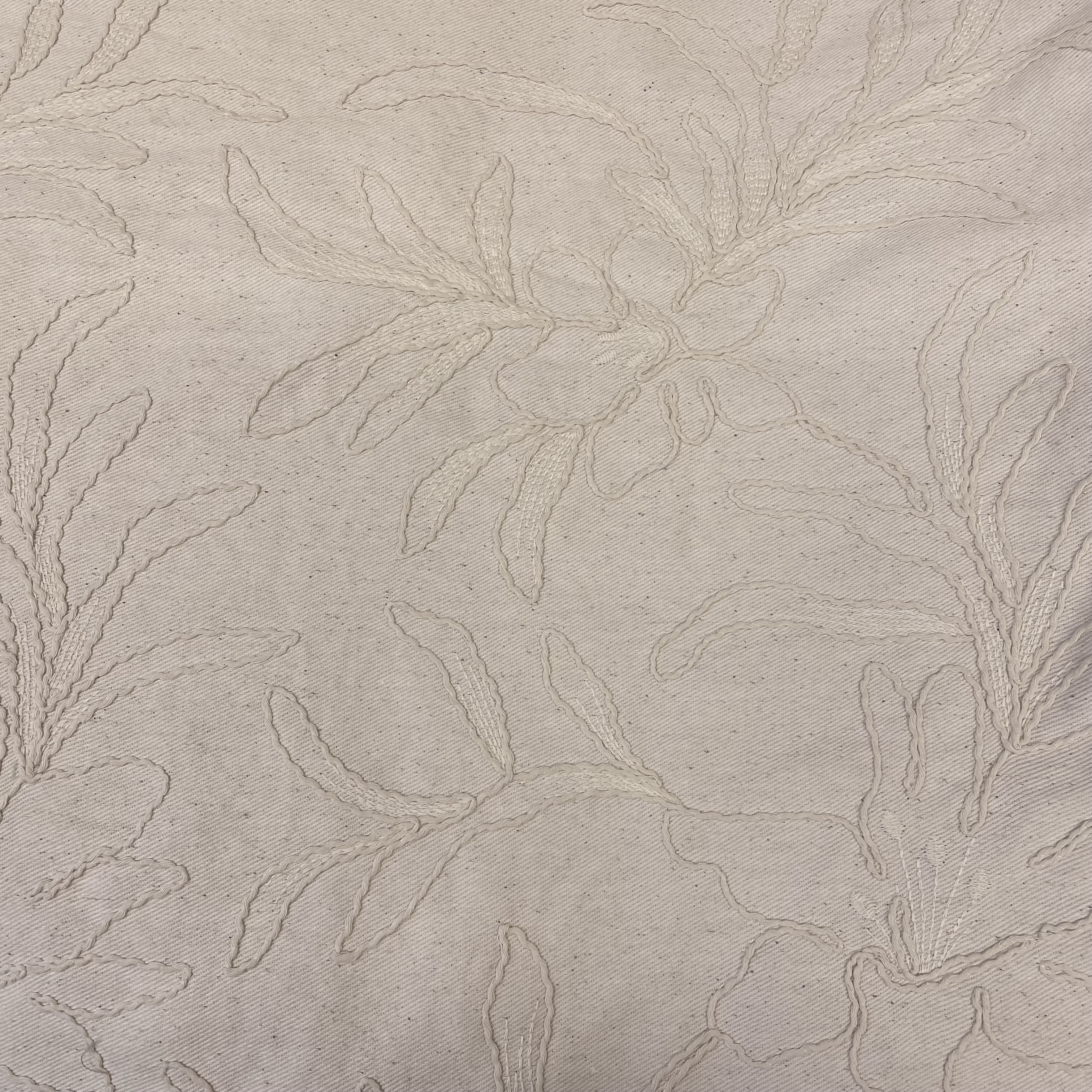 Canvas i bomuld med broderi i råhvid pr 0,25 m