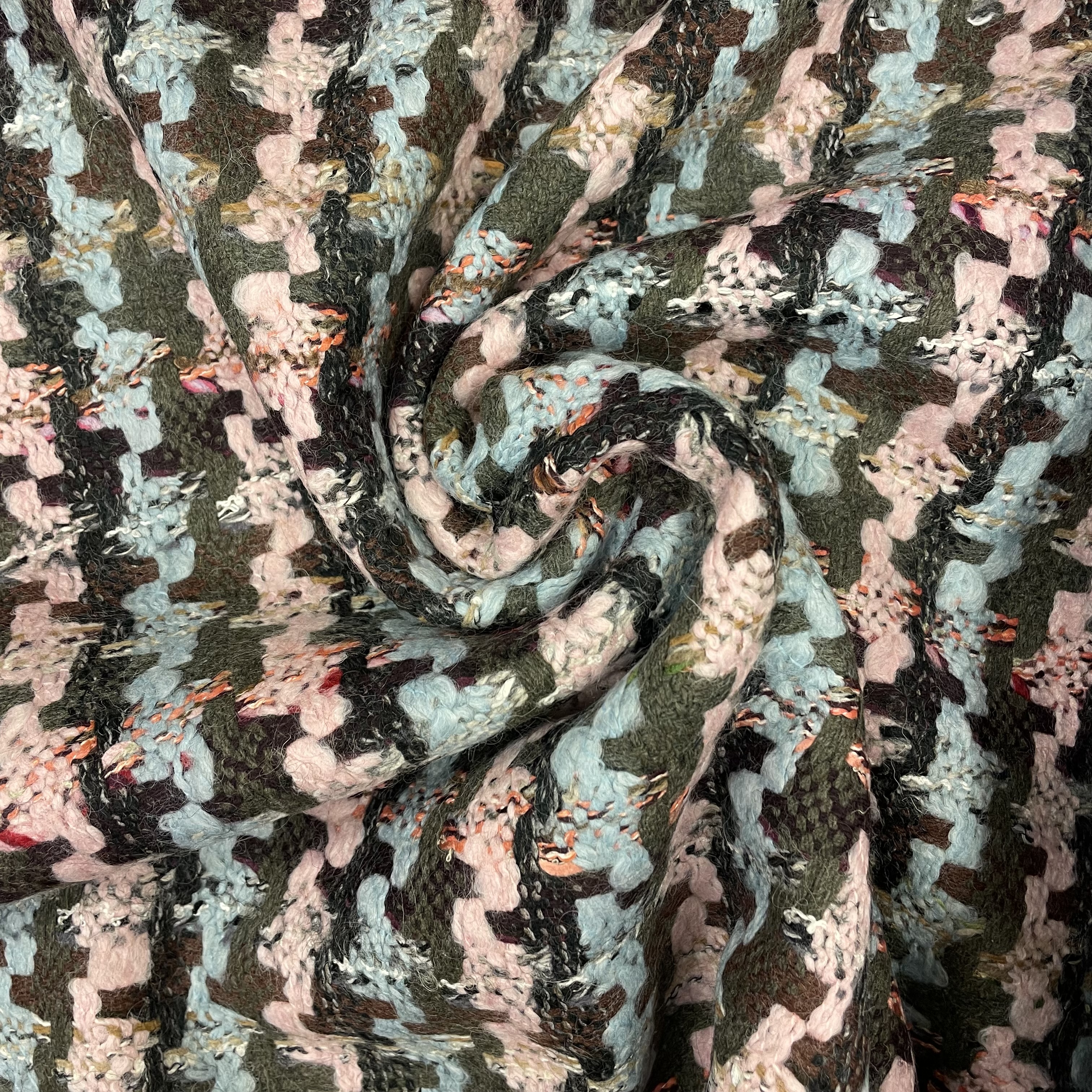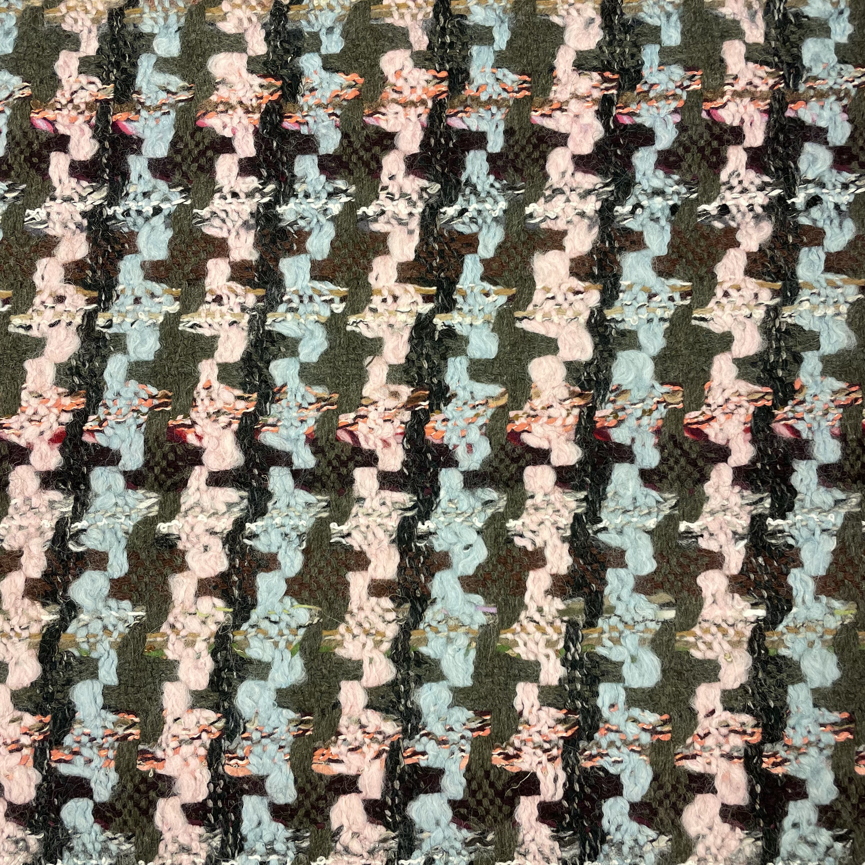 Super smuk metervare direkte fra et af de helt store modehuse i Italien. Stoffet har et flot hanefjed mønster i flere farver.