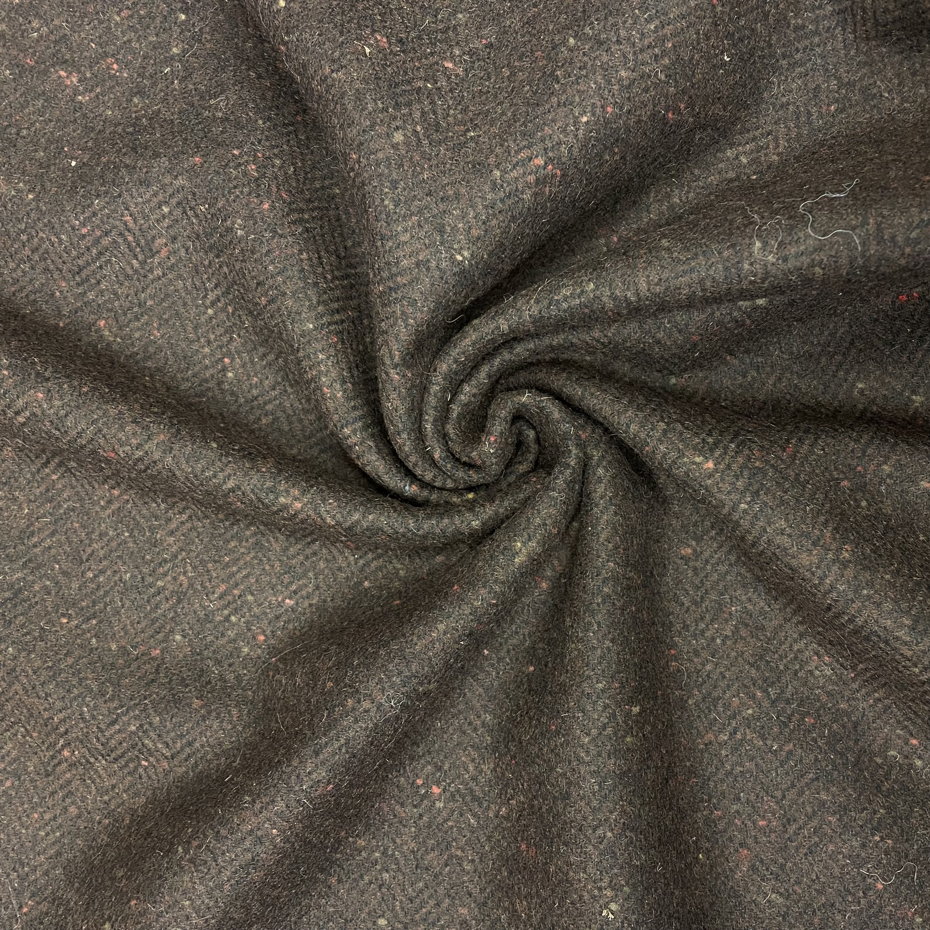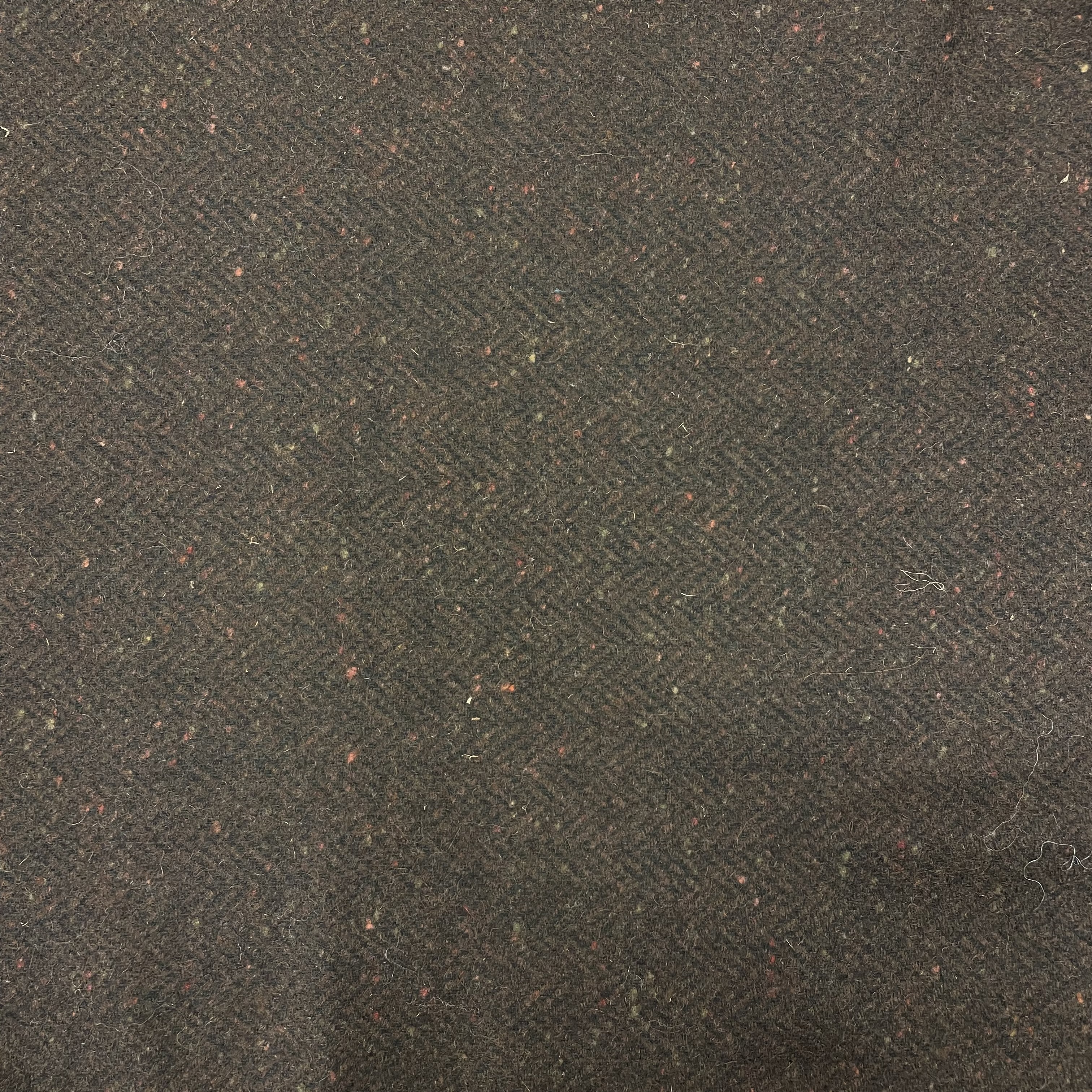 Super smuk metervare direkte fra et af de helt store modehuse i Italien. Stoffet er sildebensvævet i smuk mørk brun farve med tweed. Rigtig smukt stof.
