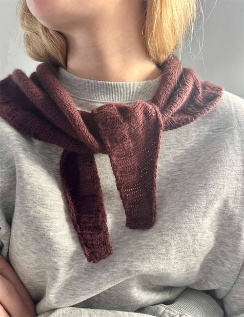 Note Bandana er et glatstrikket tørklæde med kant i dobbeltrib. Det kan strikkes i præcis den størrelse, du har brug for – eller så langt garnet rækker – og er pænt på begge sider.