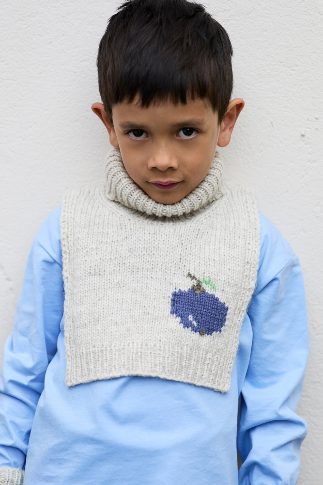 Alle modellerne strikkes i det luftige kardegarn Fivel, spundet af 100% norsk lammeuld. Garnet giver masser af struktur, varme og holdbarhed, så tøjet kan holde til tumleleg, vask – og ikke mindst gå i arv.