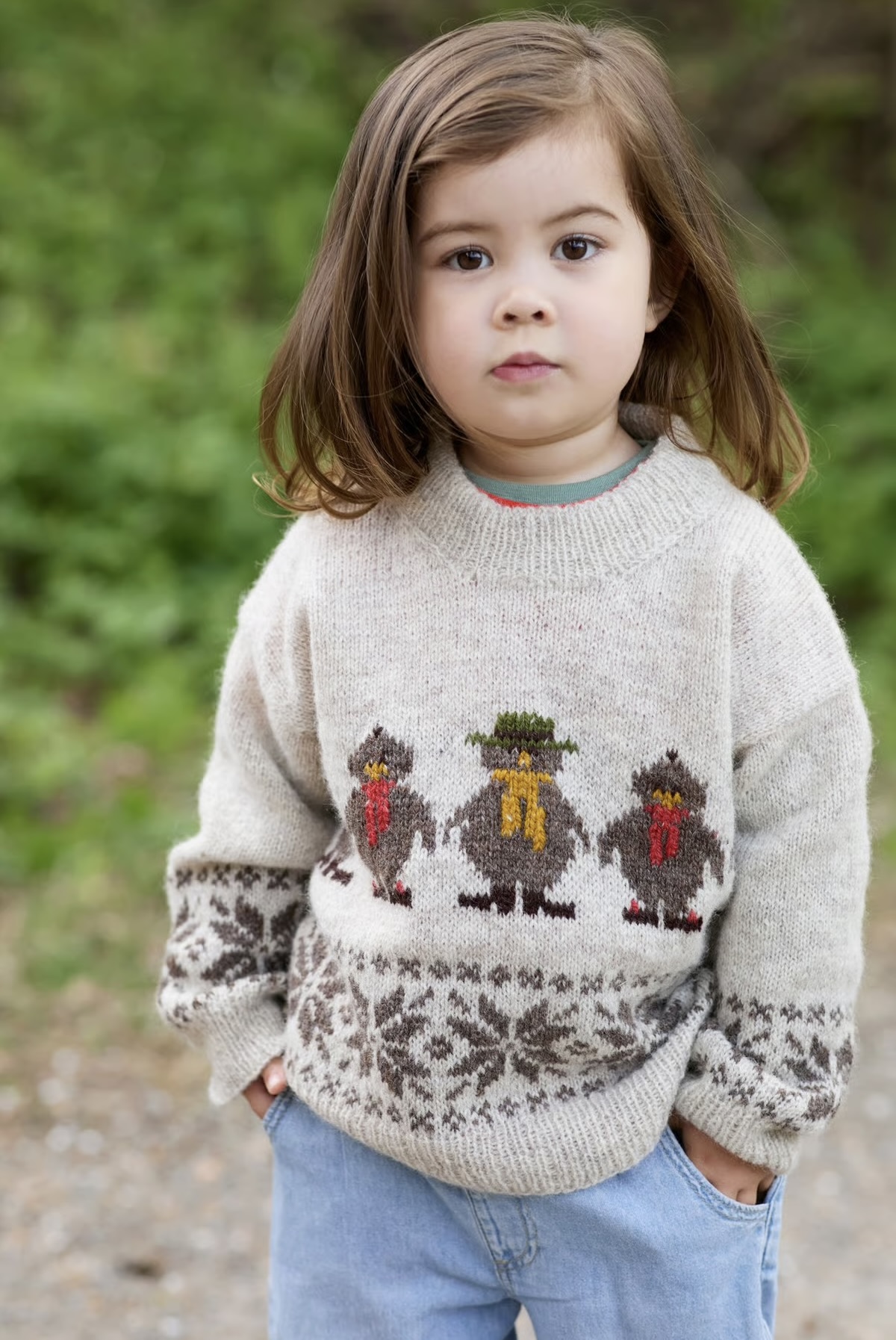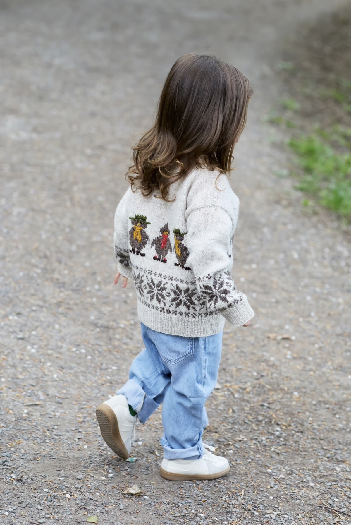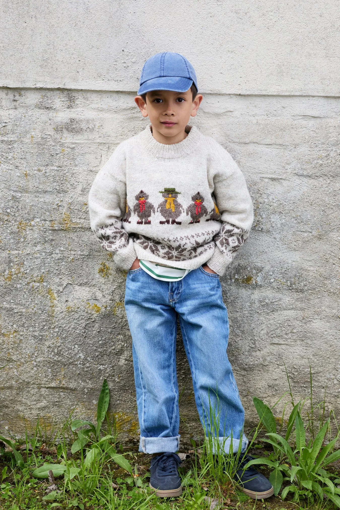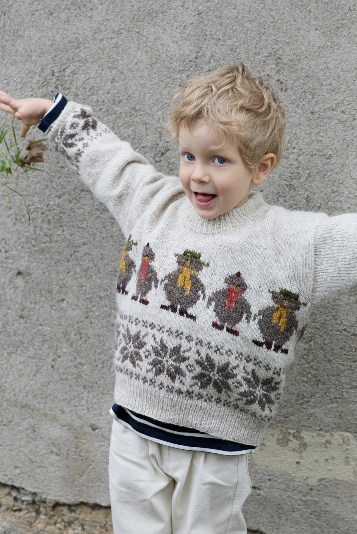 Flåklypa-sweateren er inspireret af det eventyrlige Flåklypa-univers (Bjergkøbing Grand Prix på dansk). Selvfølgelig er Solan og Ludvig med – og det samme er ottebladsmønstret fra dækket på Il Tempo Gigante. Sweateren strikkes oppefra og ned i glatstrik med mønsterborter og smarte teknikker som vendepinde og maskesting – lige tilpas opfindsomt uden at blive for avanceret.