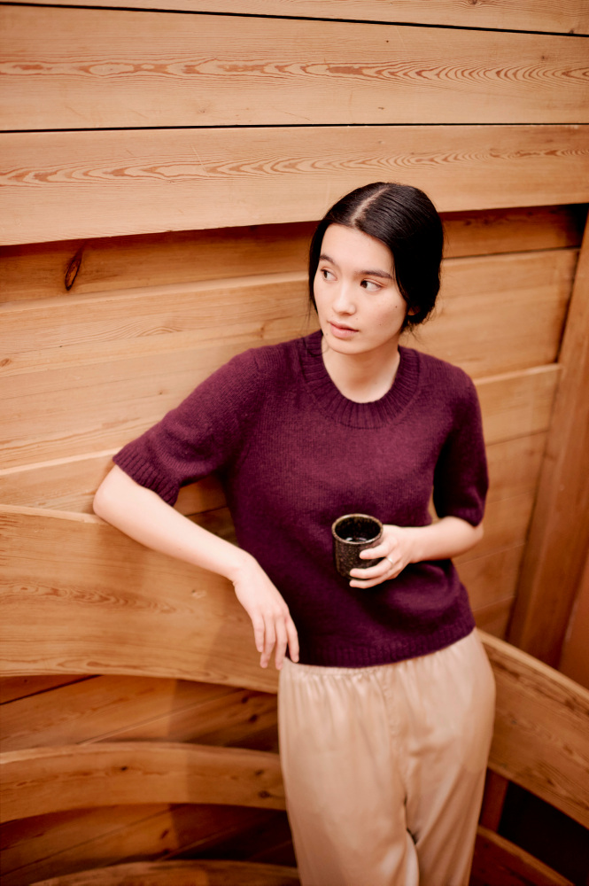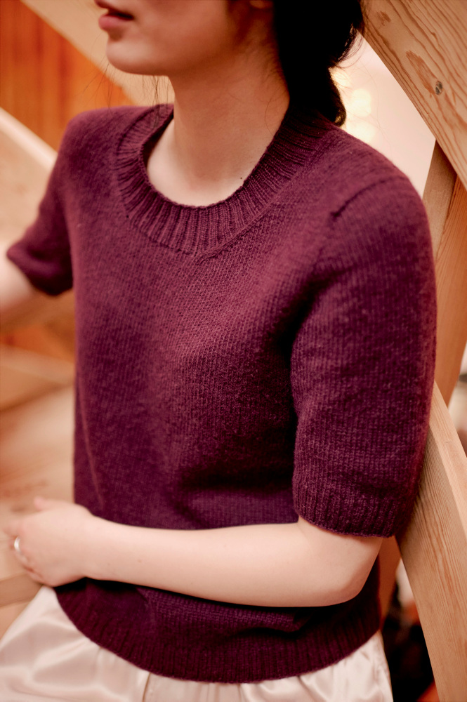 Den strikkes i Lun Merino, som er et blødt og let kardegarn i 100 % merinould. Resultatet er en T-shirt, der føles utrolig behagelig mod huden og er perfekt både til hverdag og arbejde – og som nemt kan styles lidt finere til særlige anledninger.
