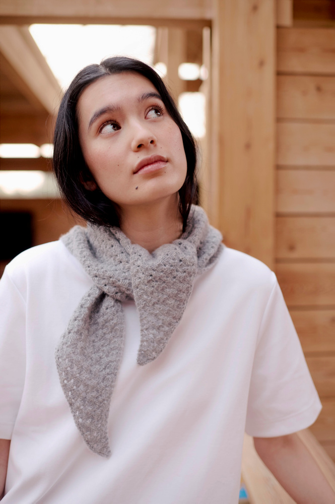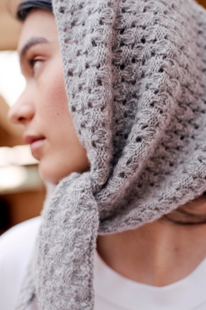 Lunt Avensjal er et smukt og gennemarbejdet trekantssjal med en fin, rutet blondestruktur. Designet er skabt med fokus på, at sjalet er lige flot fra begge sider, hvilket gør det nemt at bruge og style – uanset hvordan det falder om halsen.