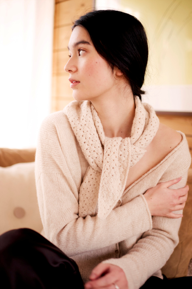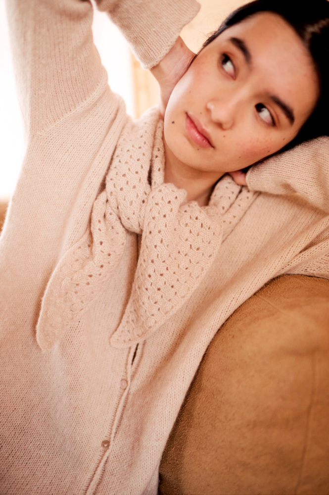 Strikket i Lun Merino får du et let og luftigt sjal, der føles blødt mod huden og samtidig har et eksklusivt og feminint udtryk med sine fine blonder.