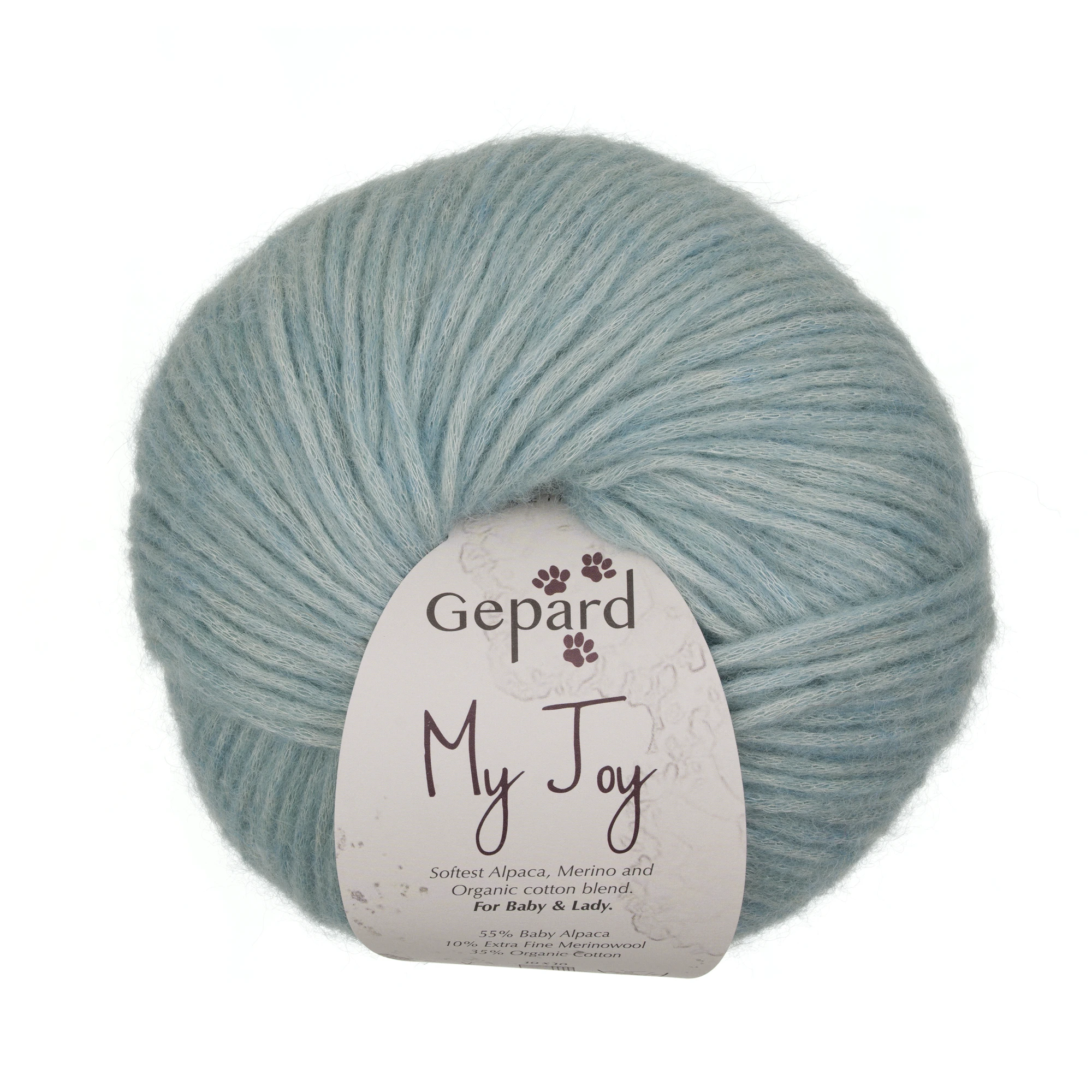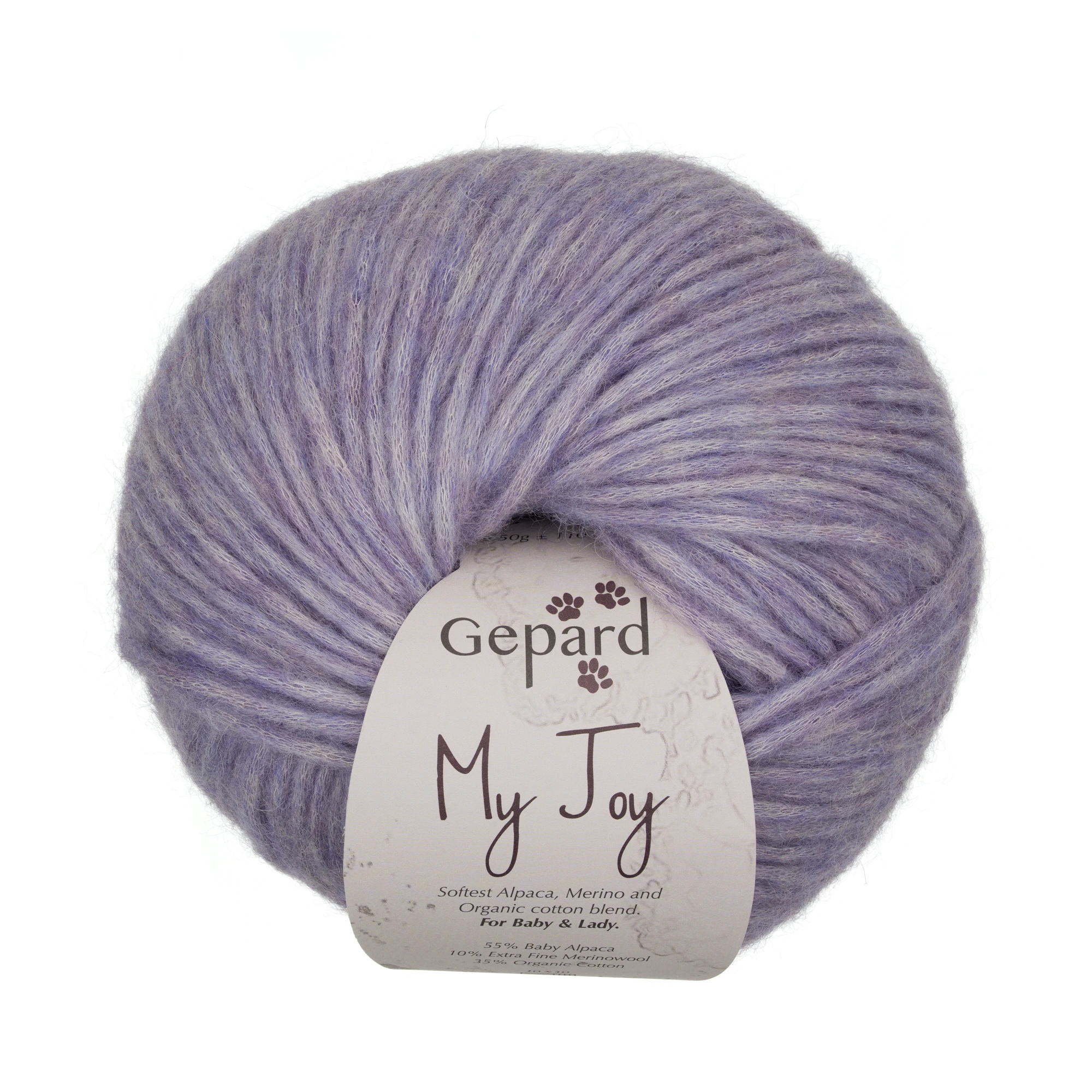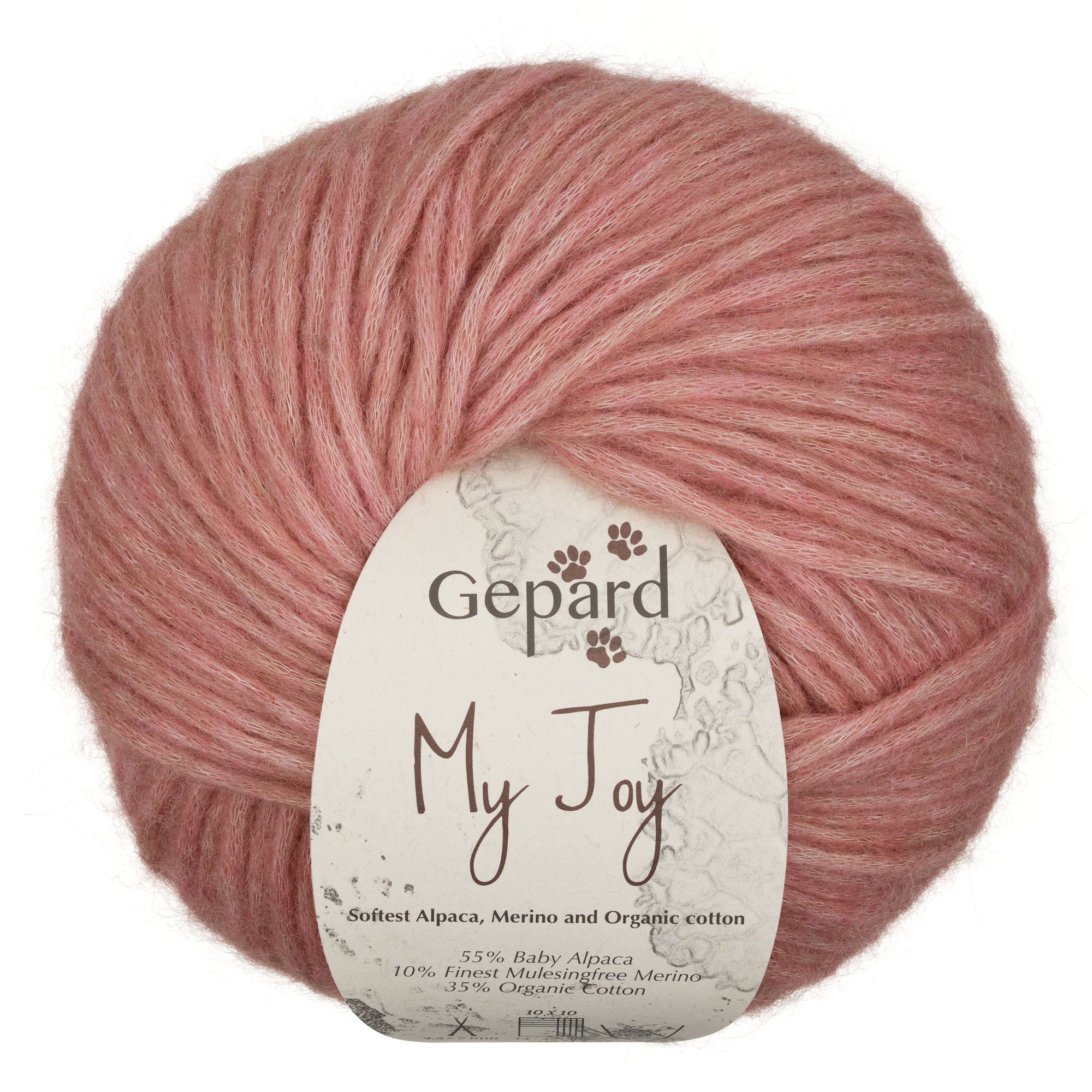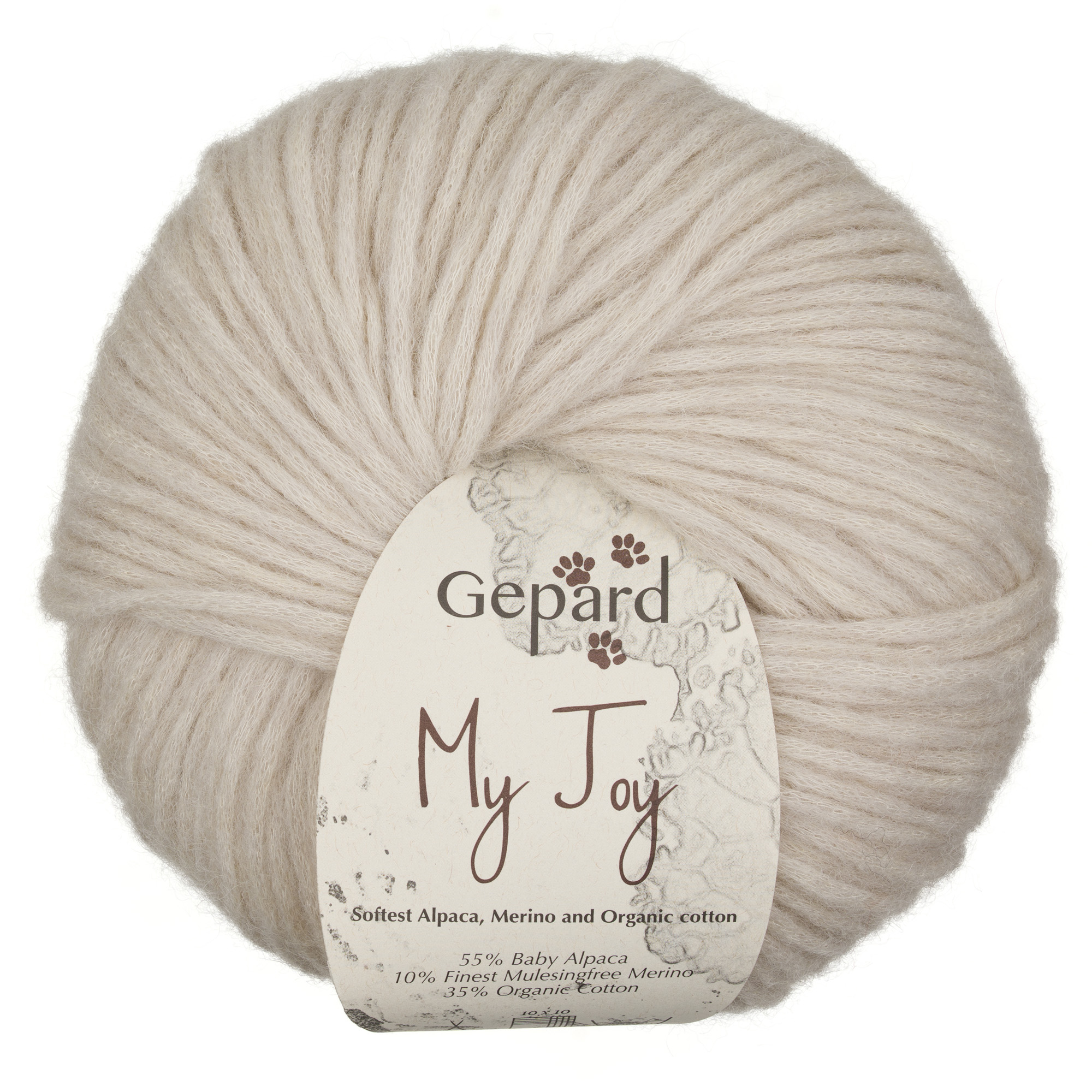 My Joy er spundet af den fineste sortering af baby alpaca, blandet med merinould og økologisk bomuld – blødere bliver det simpelthen ikke! Garnet er udviklet som et naturligt alternativ til Puno – Sus Gepard plagede deres spinderi om at lave en version uden plastik, og My Joy er resultatet.