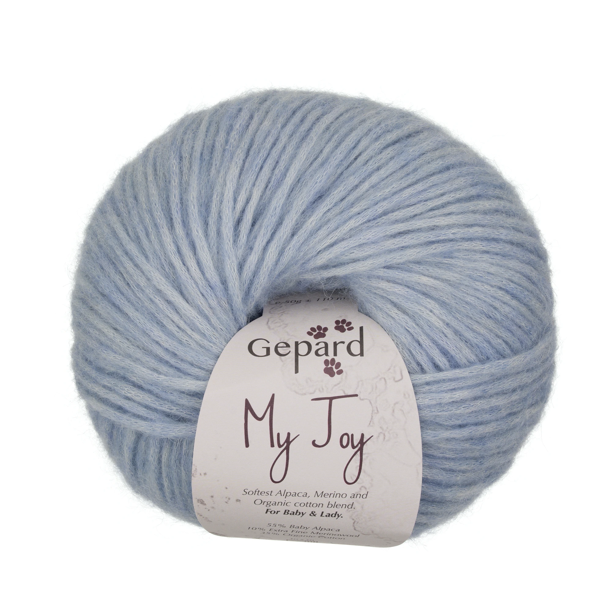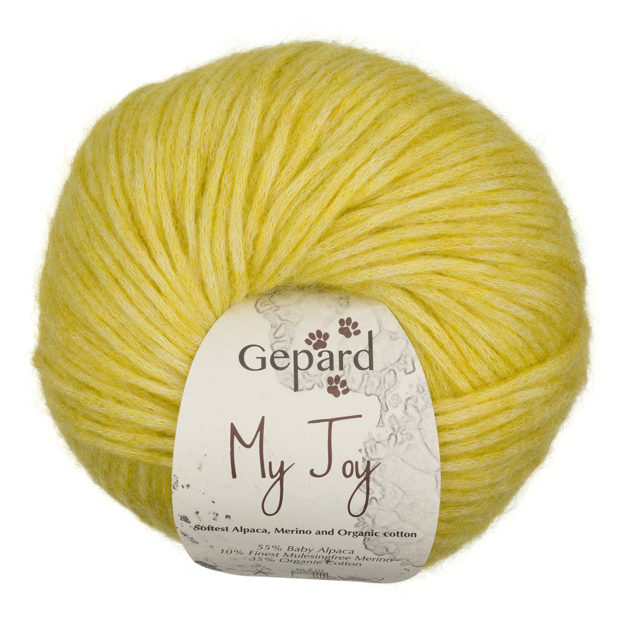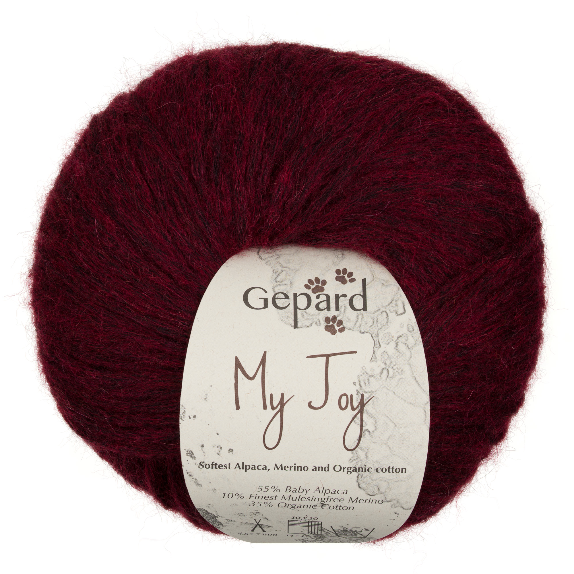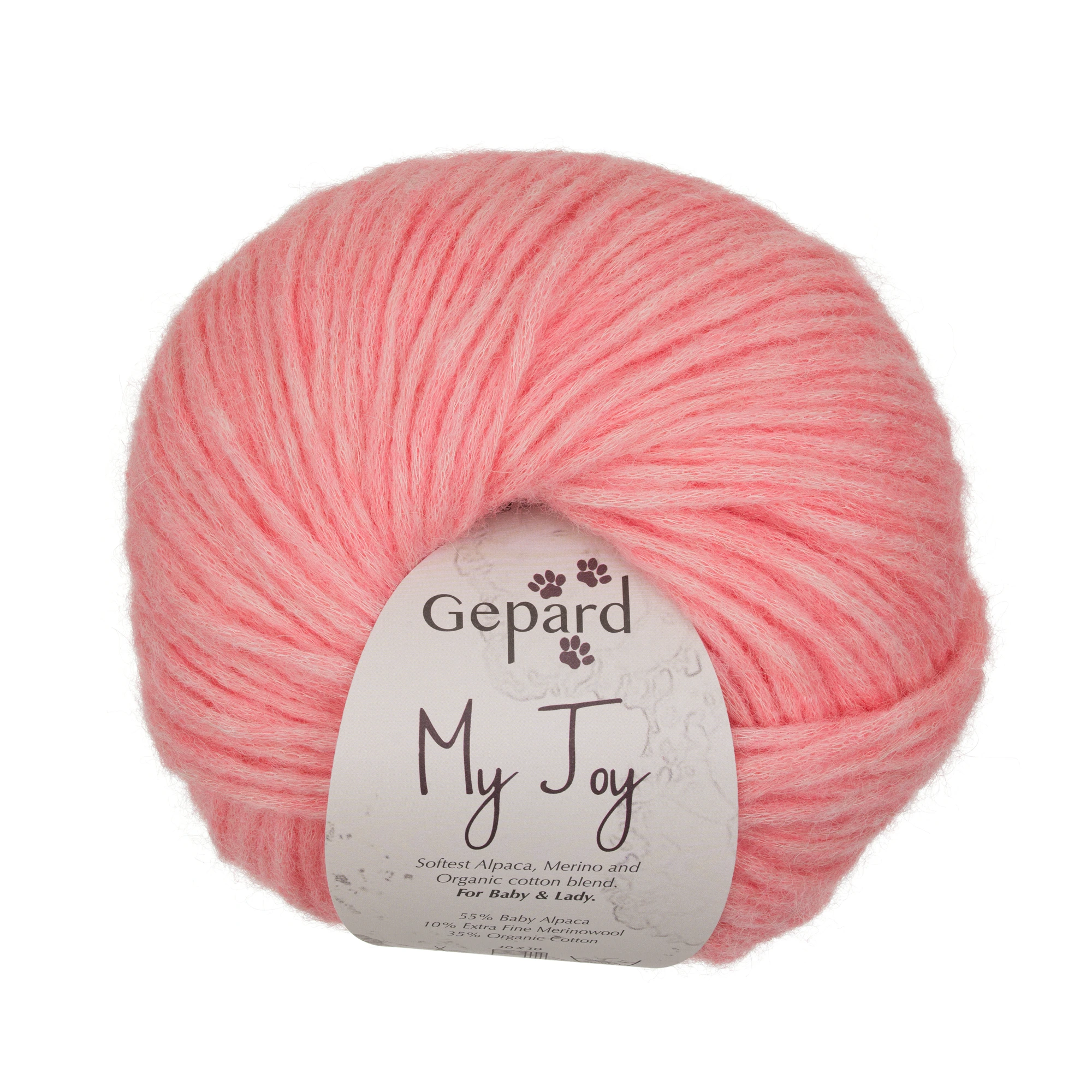 My Joy er spundet af den fineste sortering af baby alpaca, blandet med merinould og økologisk bomuld – blødere bliver det simpelthen ikke! Garnet er udviklet som et naturligt alternativ til Puno – Sus Gepard plagede deres spinderi om at lave en version uden plastik, og My Joy er resultatet.