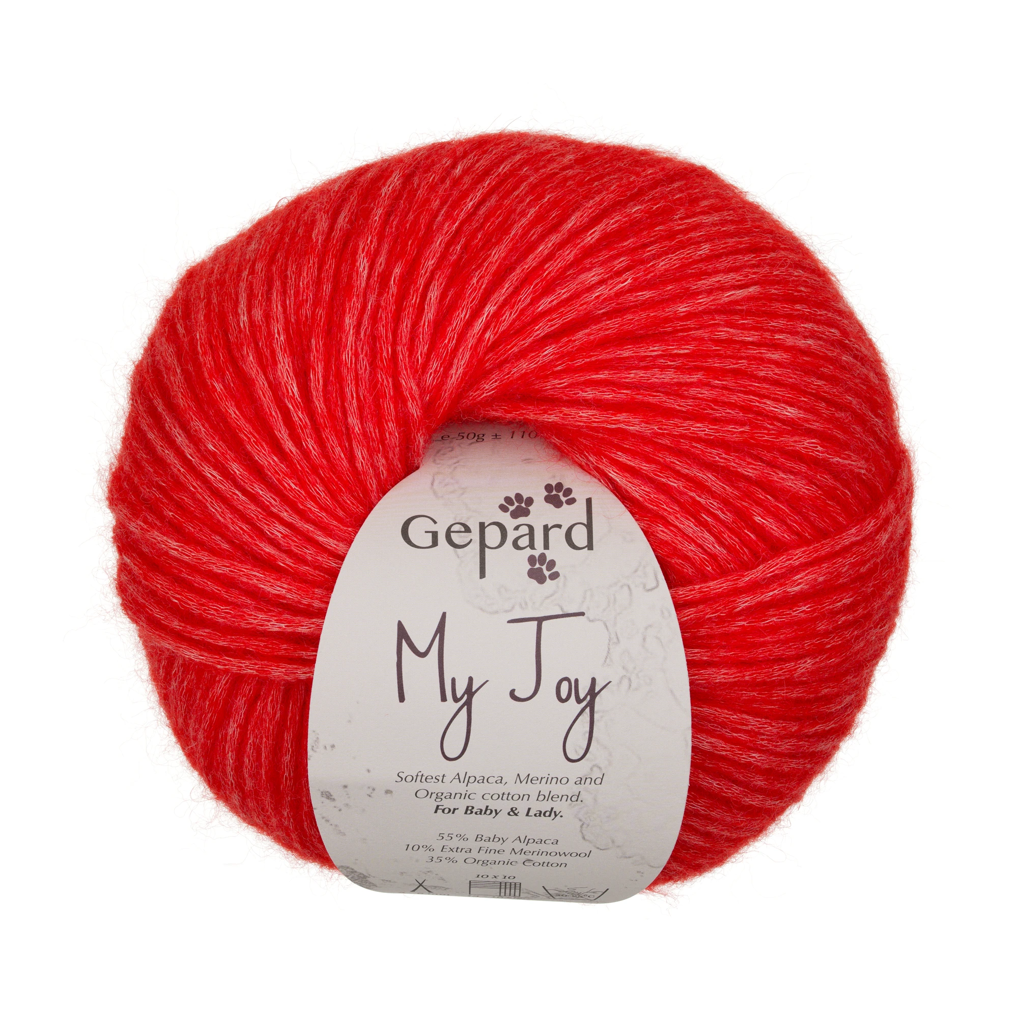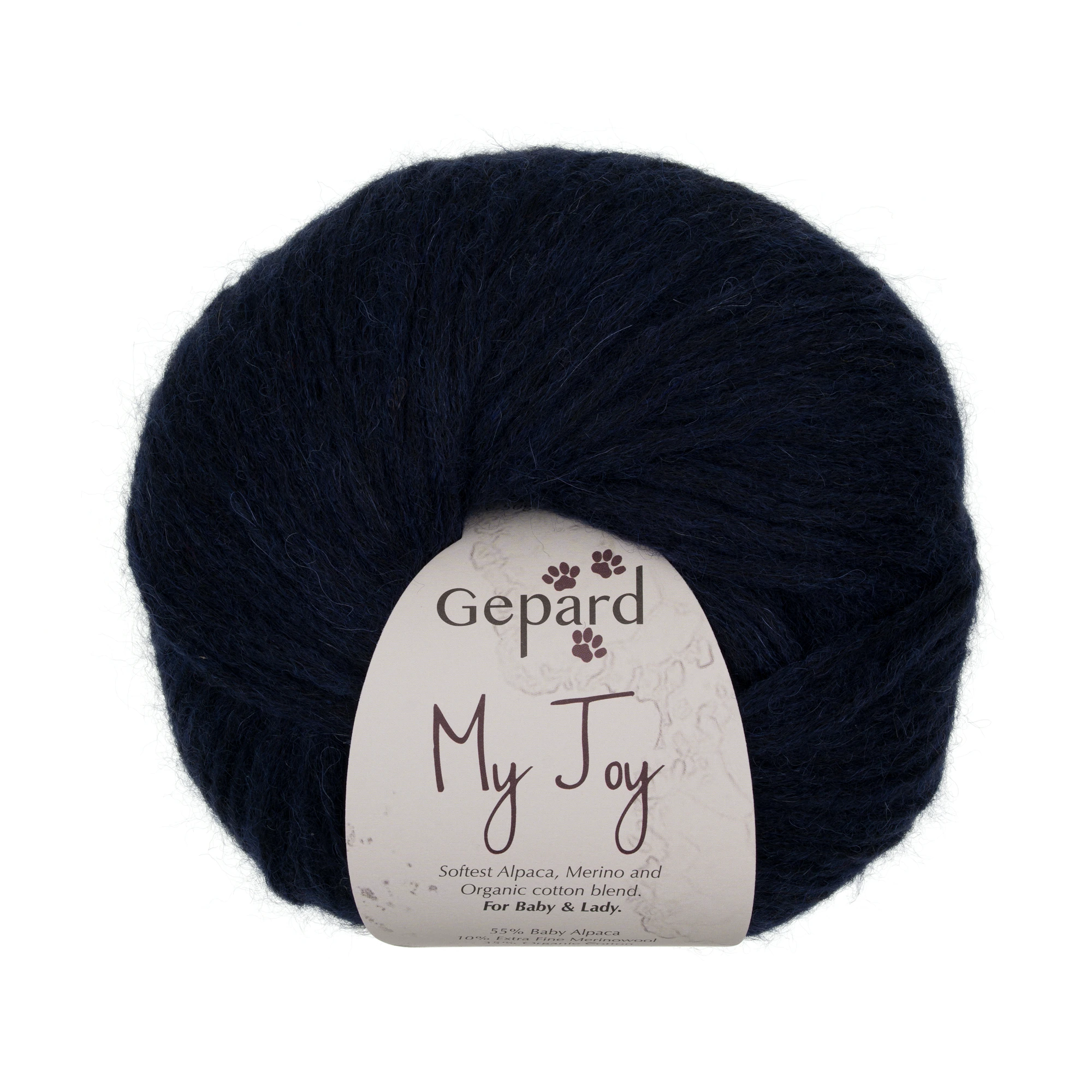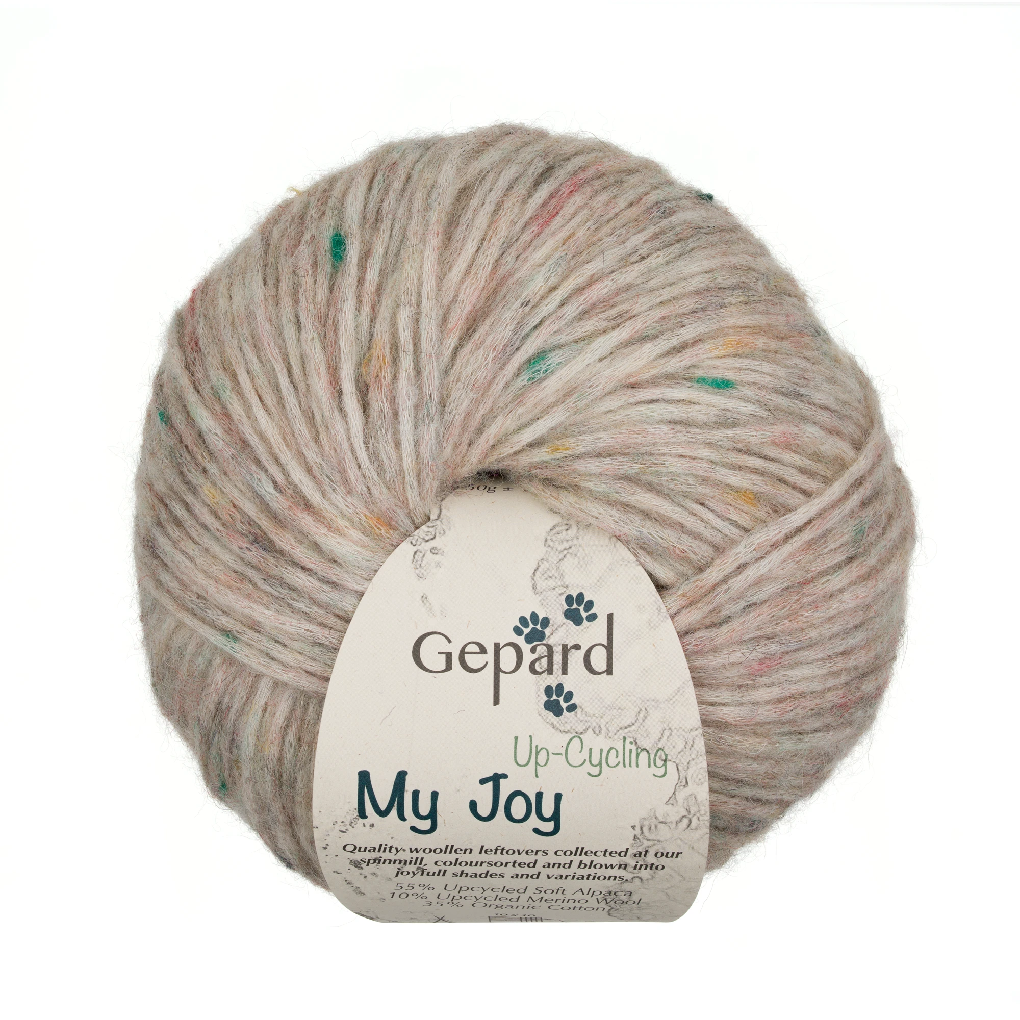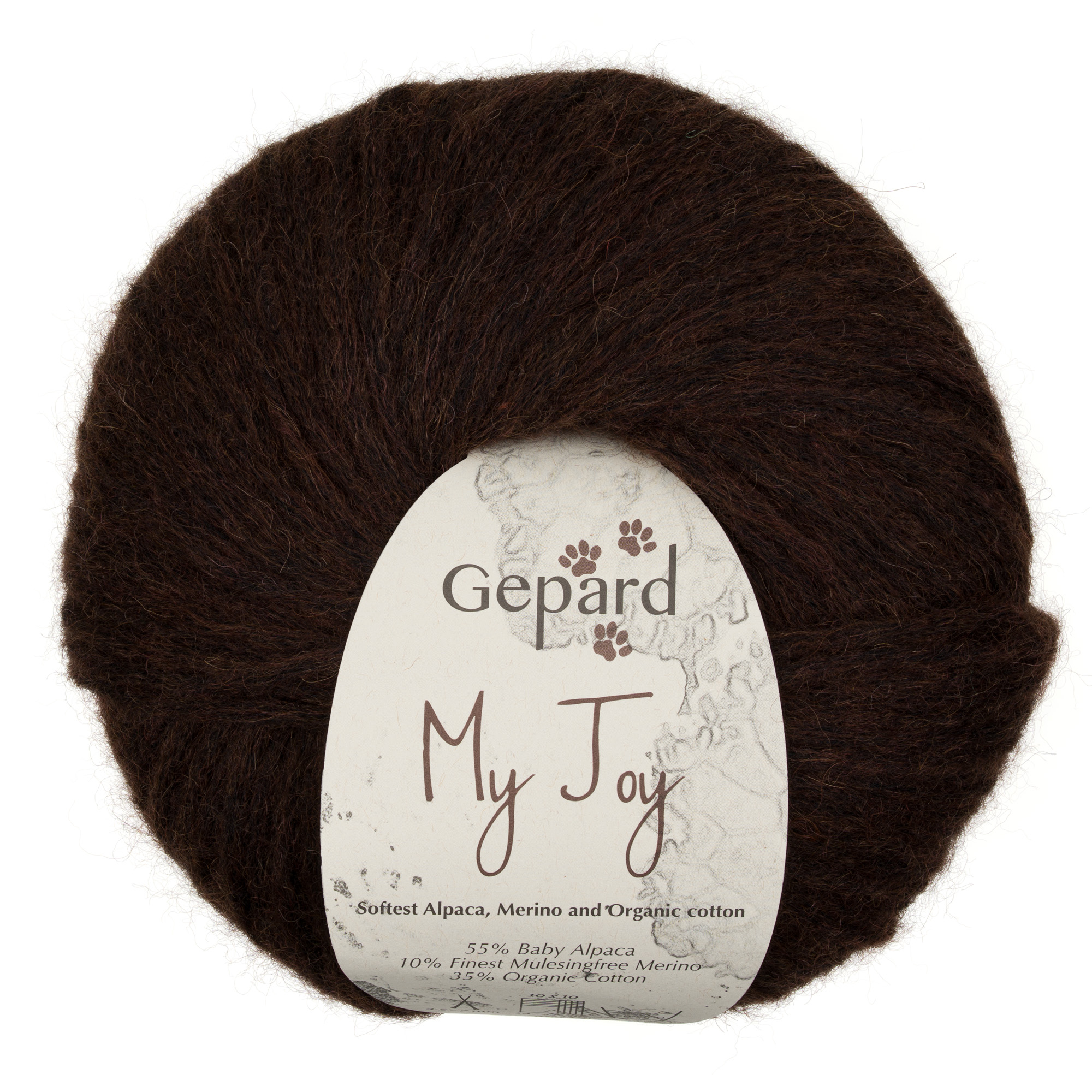 My Joy er spundet af den fineste sortering af baby alpaca, blandet med merinould og økologisk bomuld – blødere bliver det simpelthen ikke! Garnet er udviklet som et naturligt alternativ til Puno – Sus Gepard plagede deres spinderi om at lave en version uden plastik, og My Joy er resultatet.