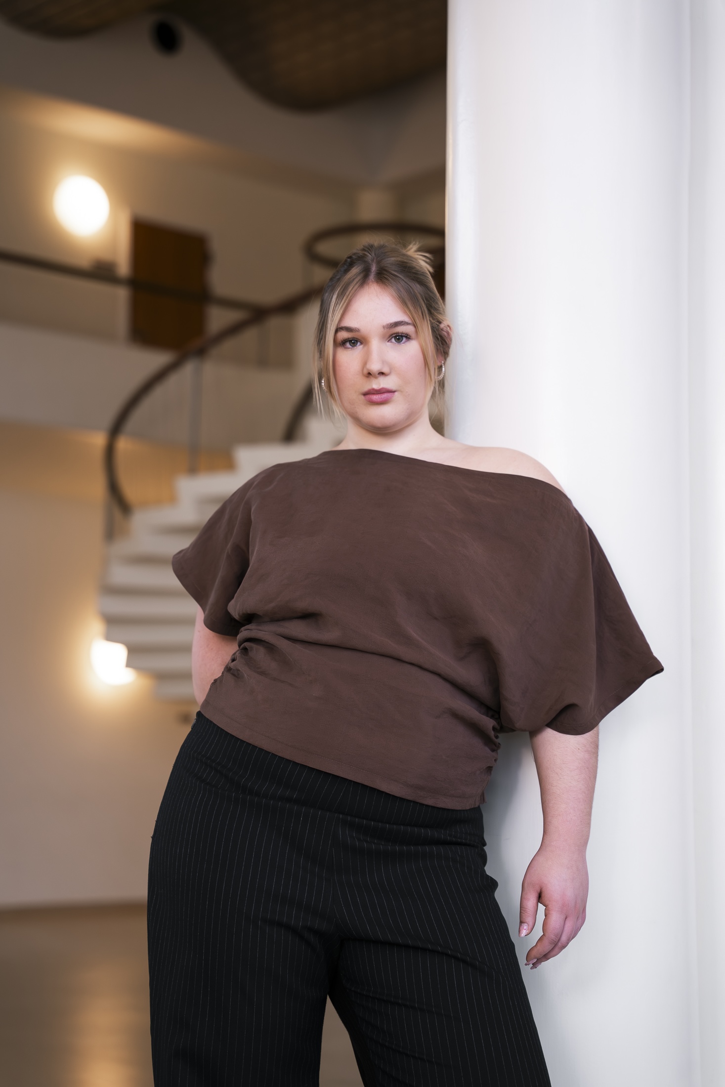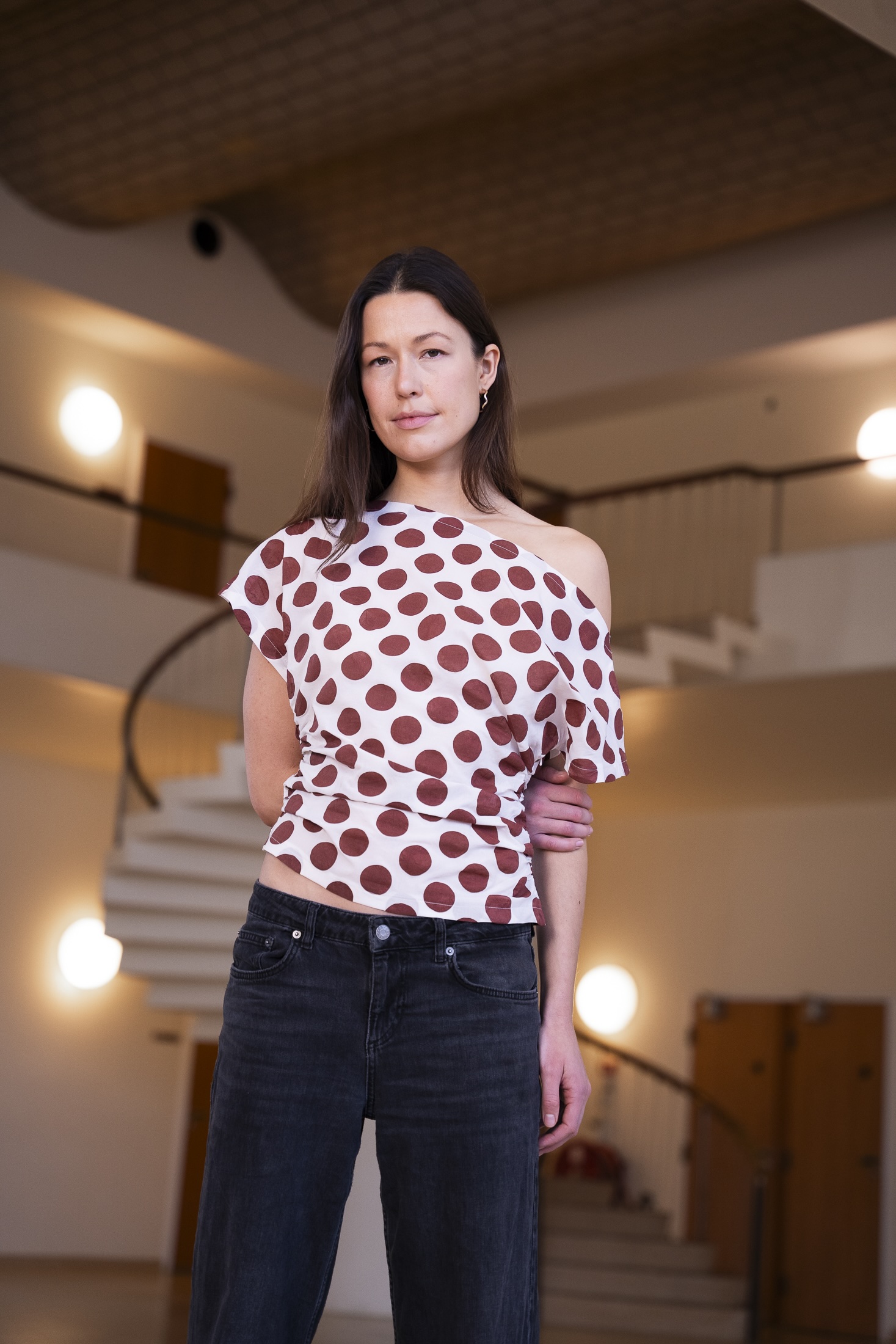 Over brystet falder toppen blødt og elegant, hvilket giver et smukt spil i stoffet. Det balanceres af en bred halsudskæring og rummelige ærmegab.