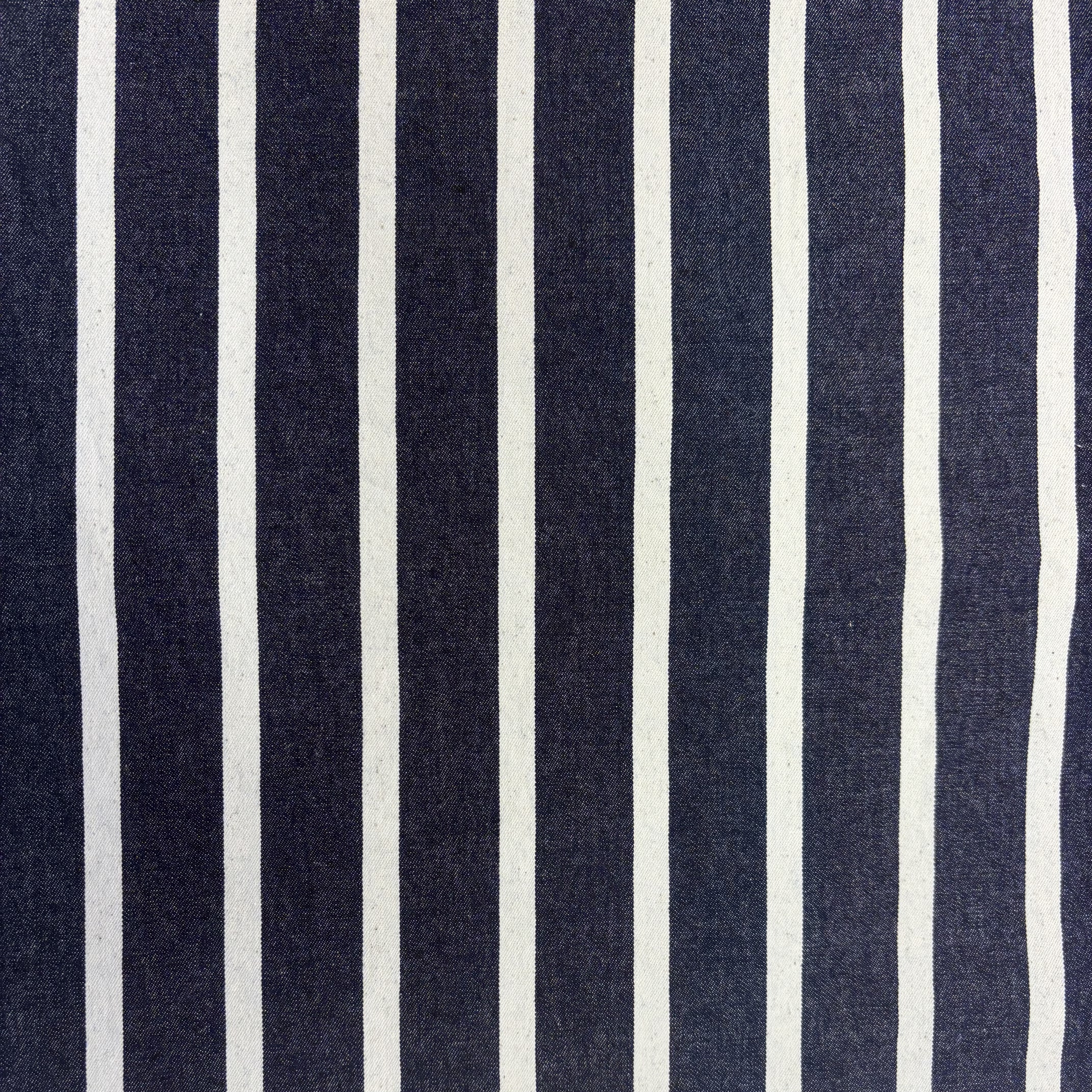 Denim i bomuld med brede og smalle striber i hvid og navy pr. 0,25 m