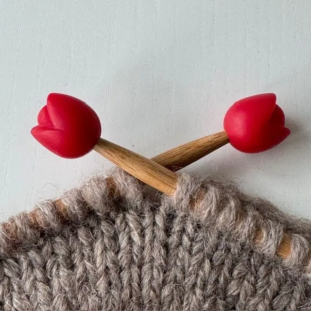 De sættes på spidsen af strikkepindene og sørger for, at maskerne bliver på plads, samtidig med at de beskytter enderne af pindene.