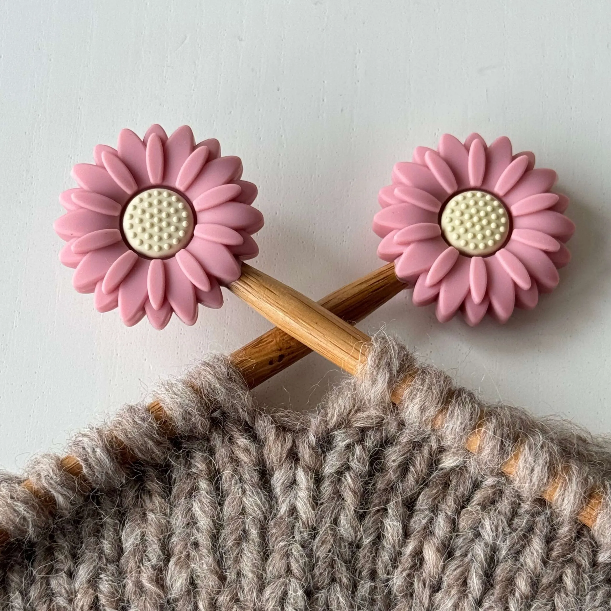 Maskestopperne er fremstillet i fleksibel, FDA-godkendt silikone og passer til strikkepinde i størrelsen 2,5–9 mm.