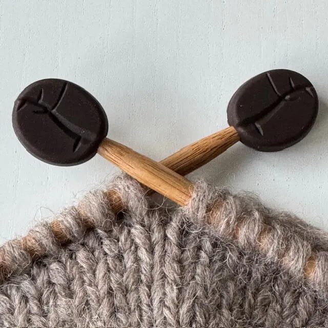 Tilføj lidt humor og hygge til dit strikketøj med disse maskestoppere formet som kaffebønner. De sættes på spidsen af strikkepindene og sørger for, at maskerne bliver på plads – perfekt både når du holder pause, og når strikketøjet skal med på tur. Samtidig beskytter de spidserne på pindene.