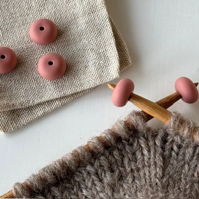 Maskestoppere er helt uundværlige – især når strikketøjet skal med i tasken. De sættes på spidsen af strikkepindene og sørger for, at maskerne bliver på pinden, samtidig med at pindespidserne beskyttes.