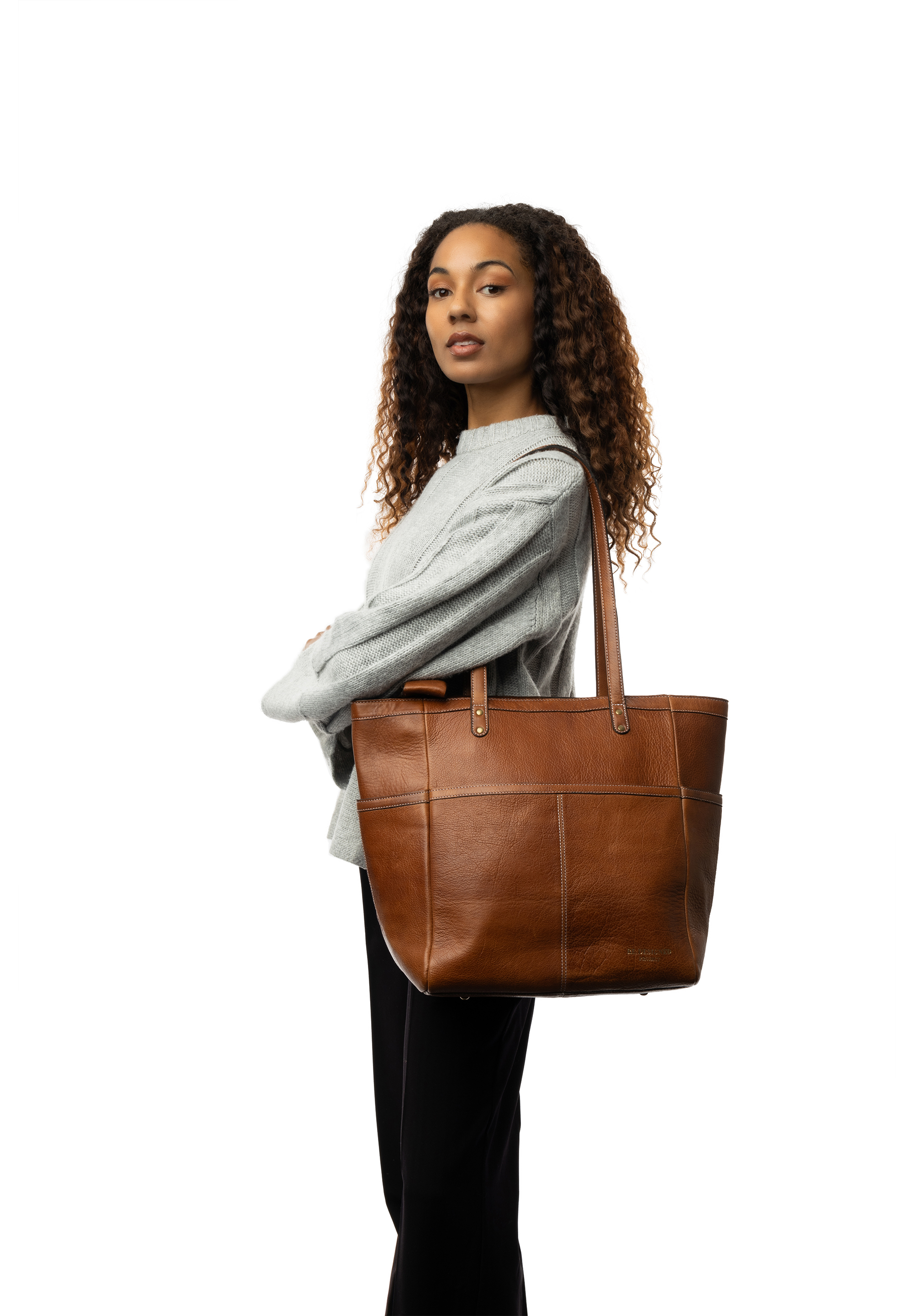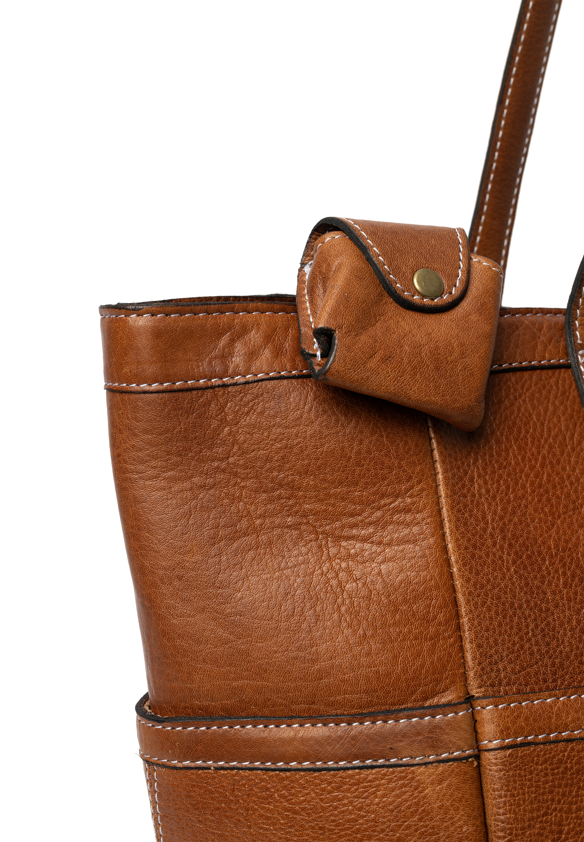 Project 37 er håndlavet i Re:Designeds Urban-kvalitet – indfarvet okseskind, der efterfølgende behandles med en let voks. Det giver et blødt, naturligt læder med en smuk struktur, hvor hver taske er unik. Den faste form gør, at tasken kan stå stabilt ved siden af dig og fungere som en strikkekurv, når du arbejder på dit projekt.