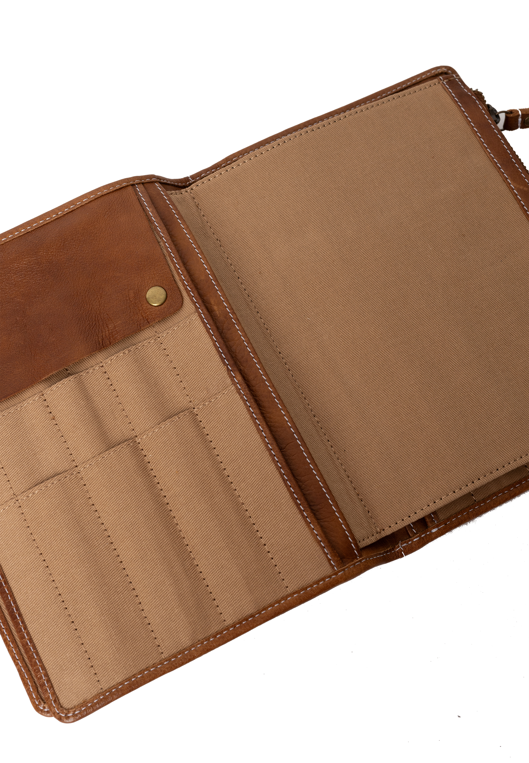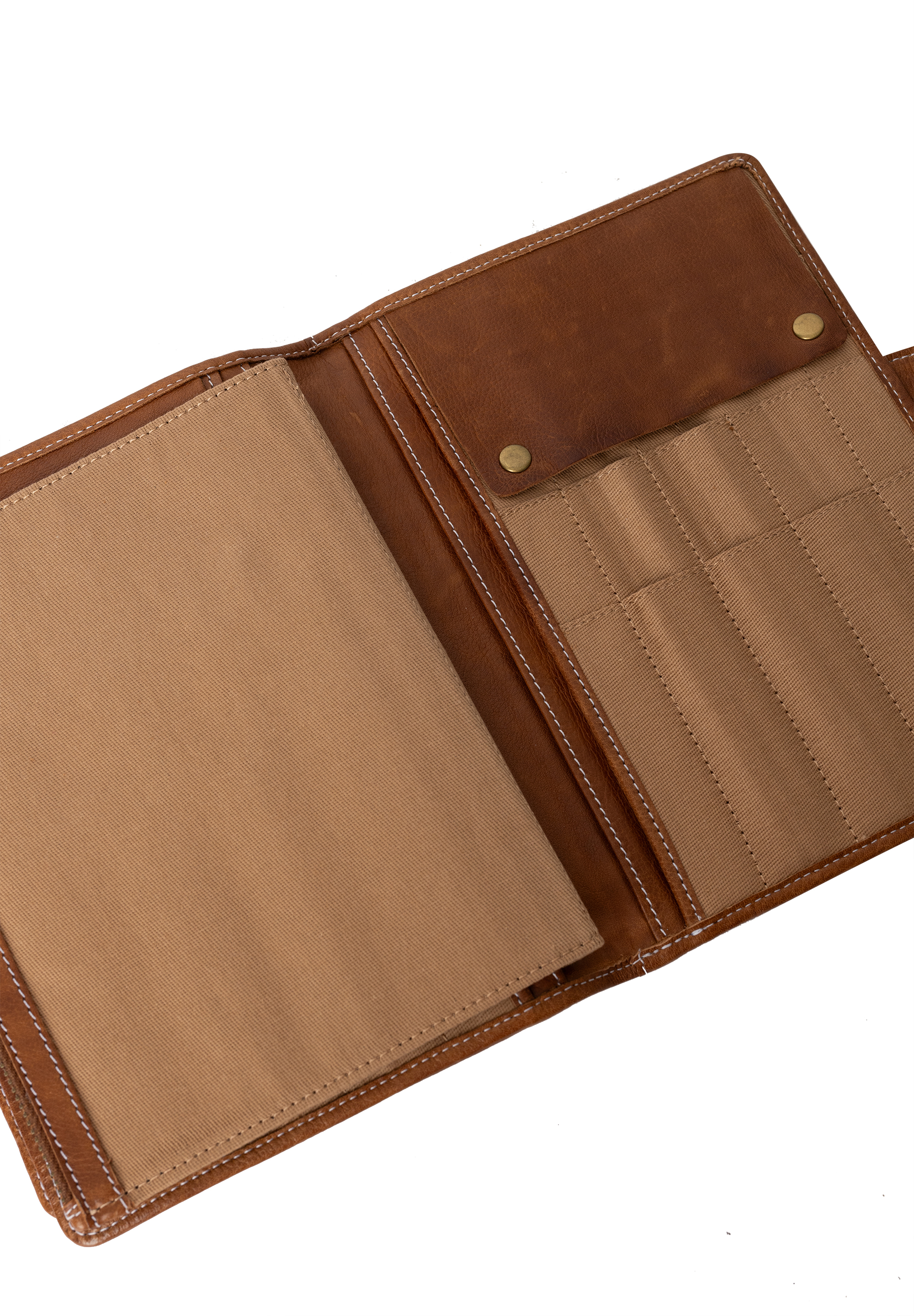 Etuiet rummer dedikerede lommer til strømpepinde, udskiftelige rundpinde og wirer. Derudover finder du en lynlåslomme perfekt til maskemarkører, pindemåler, saks eller andre småting samt åbne lommer, hvor du kan gemme opskrifter eller noter. Som en ekstra detalje er der også plads til nåle. Når du er færdig, foldes etuiet sammen og lukkes med en trykknap.