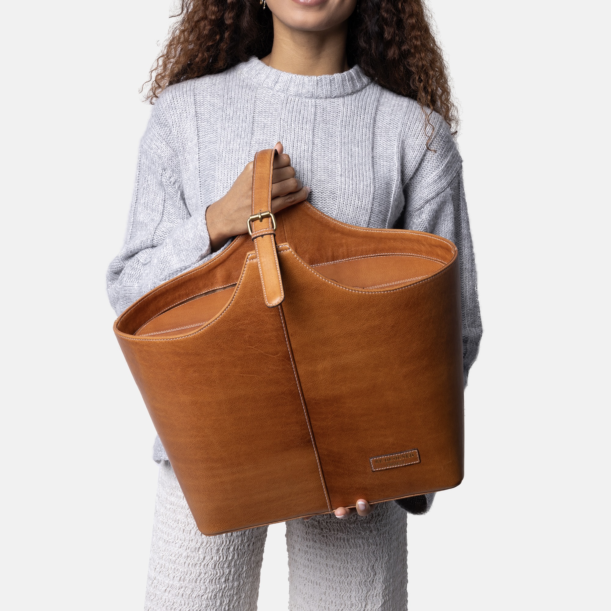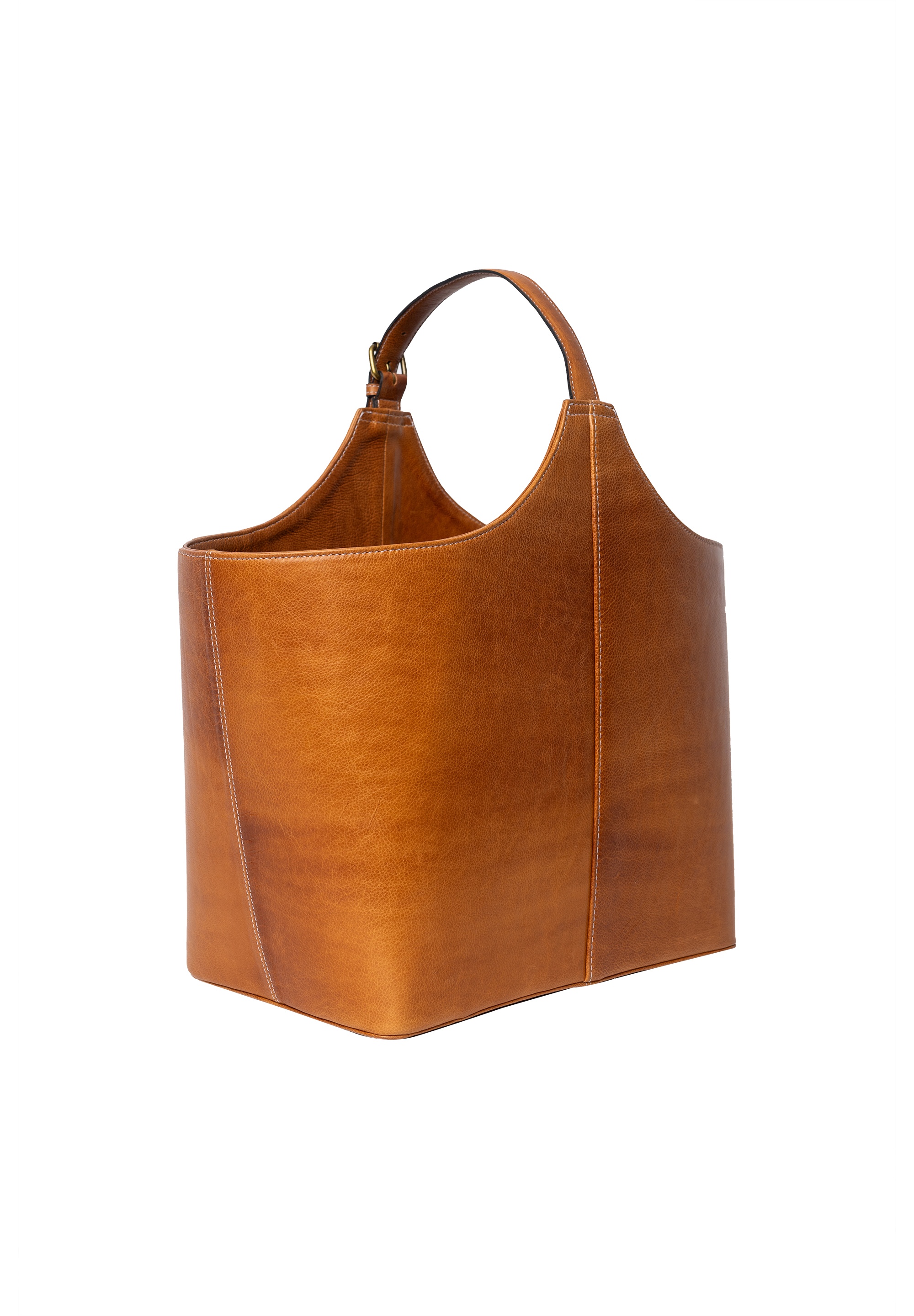 Denne rummelige læderspand er ideel til strikkere, der værdsætter både stil og funktionalitet, og den er et elegant alternativ til den klassiske strikkekurv.