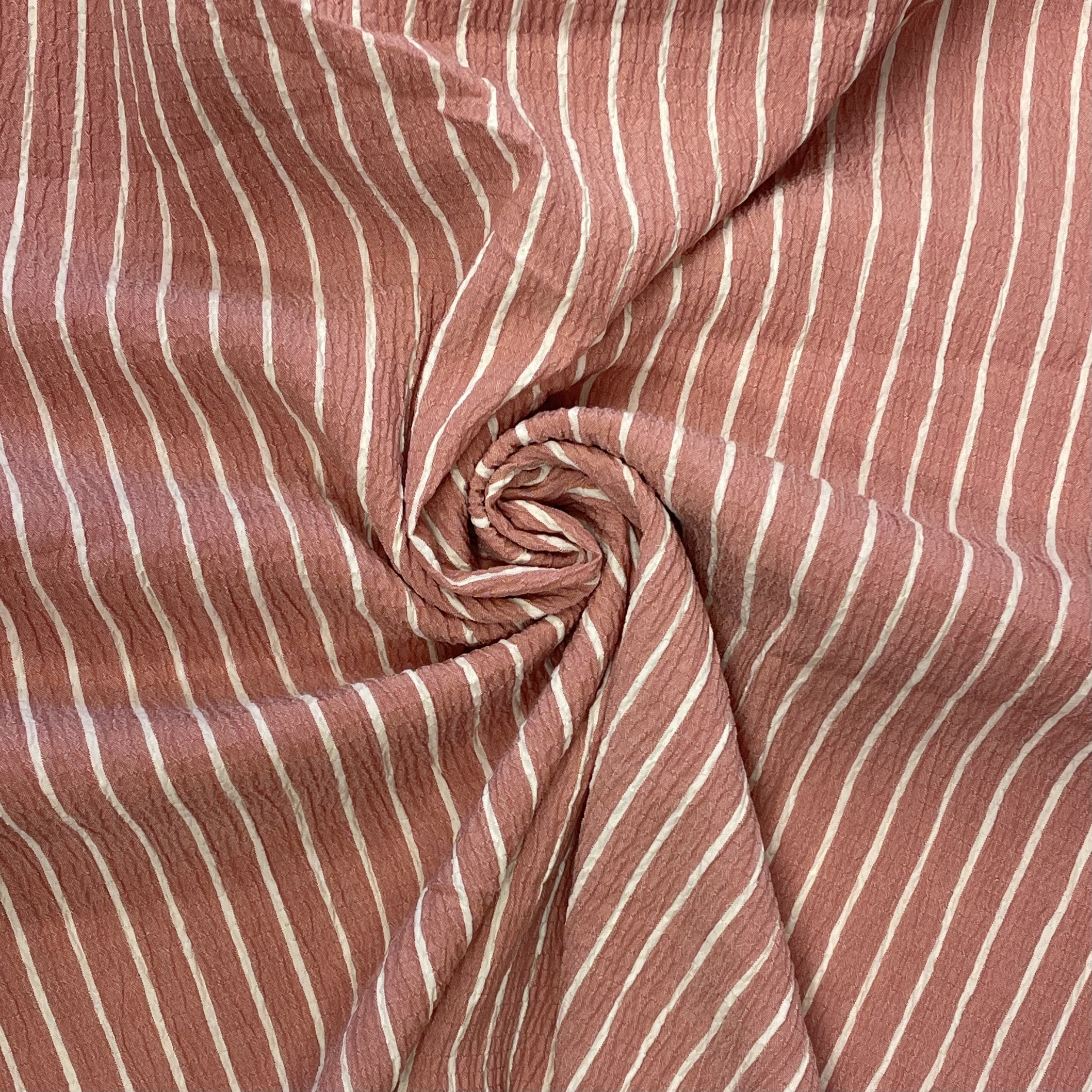 Crepestof i rosa med striber i hvid