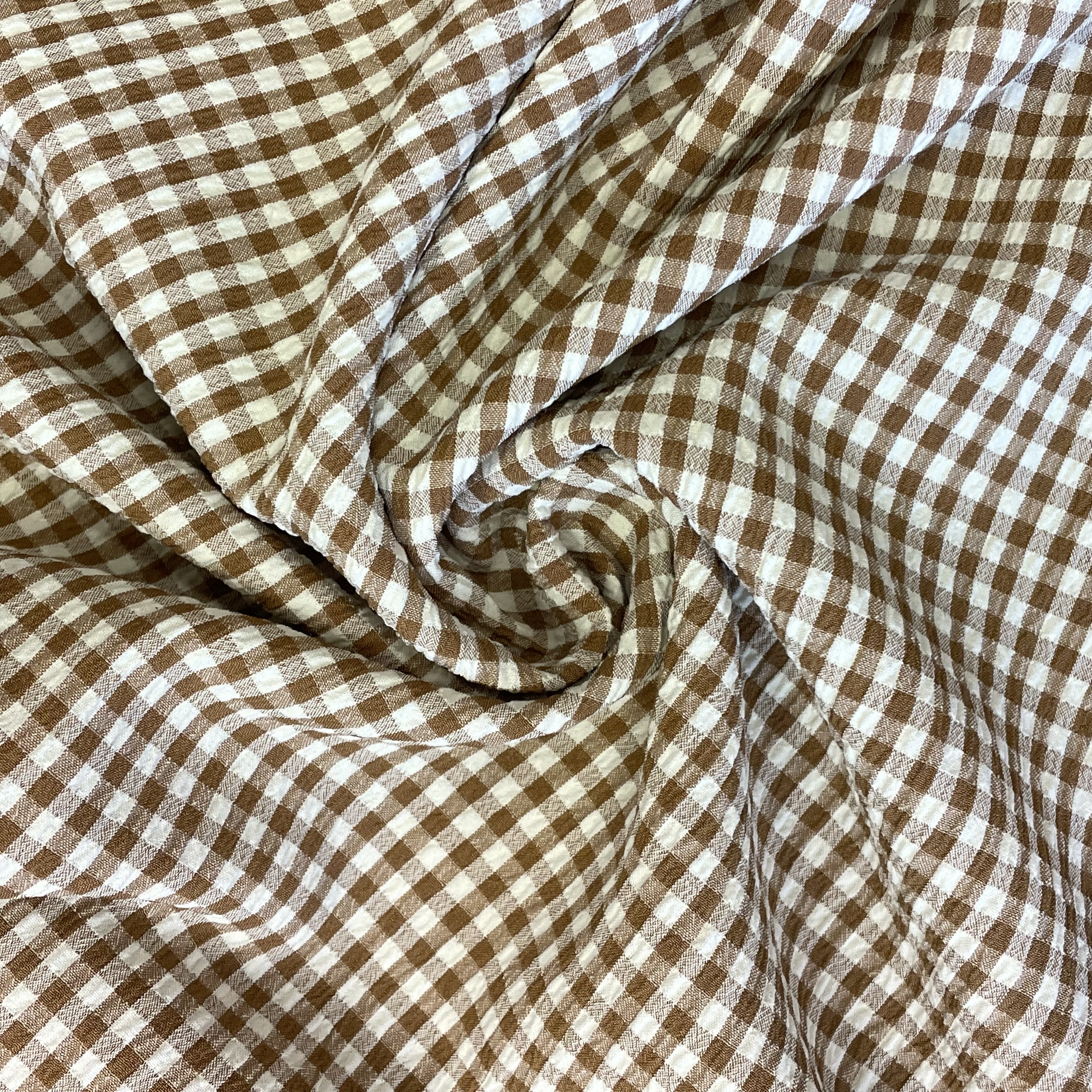 Seersucker stof med tern i Camel - pr. 0,25m