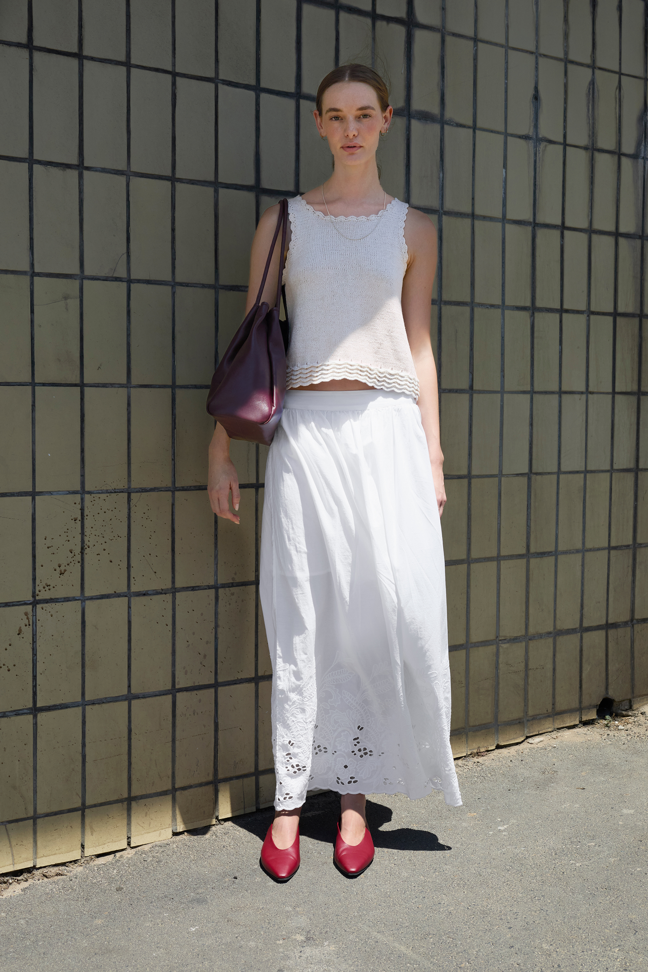 Toppen strikkes oppefra og ned i Tynn Line (holdt dobbelt), som giver et let og luftigt resultat – perfekt til varme dage.